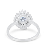 14K White Gold Art Deco Round Bridal Baguette Simulated CZ Wedding Engagement Ring Size-7