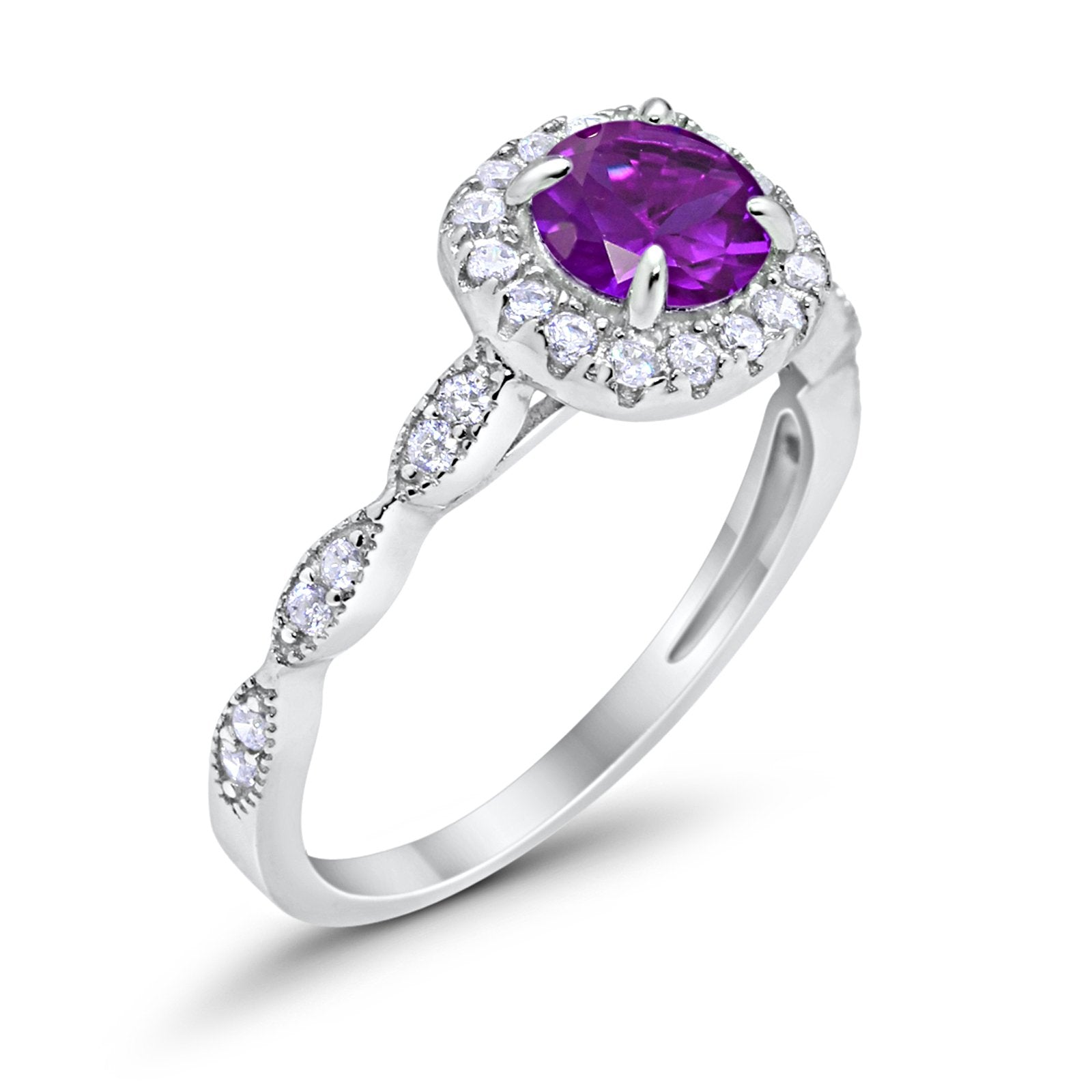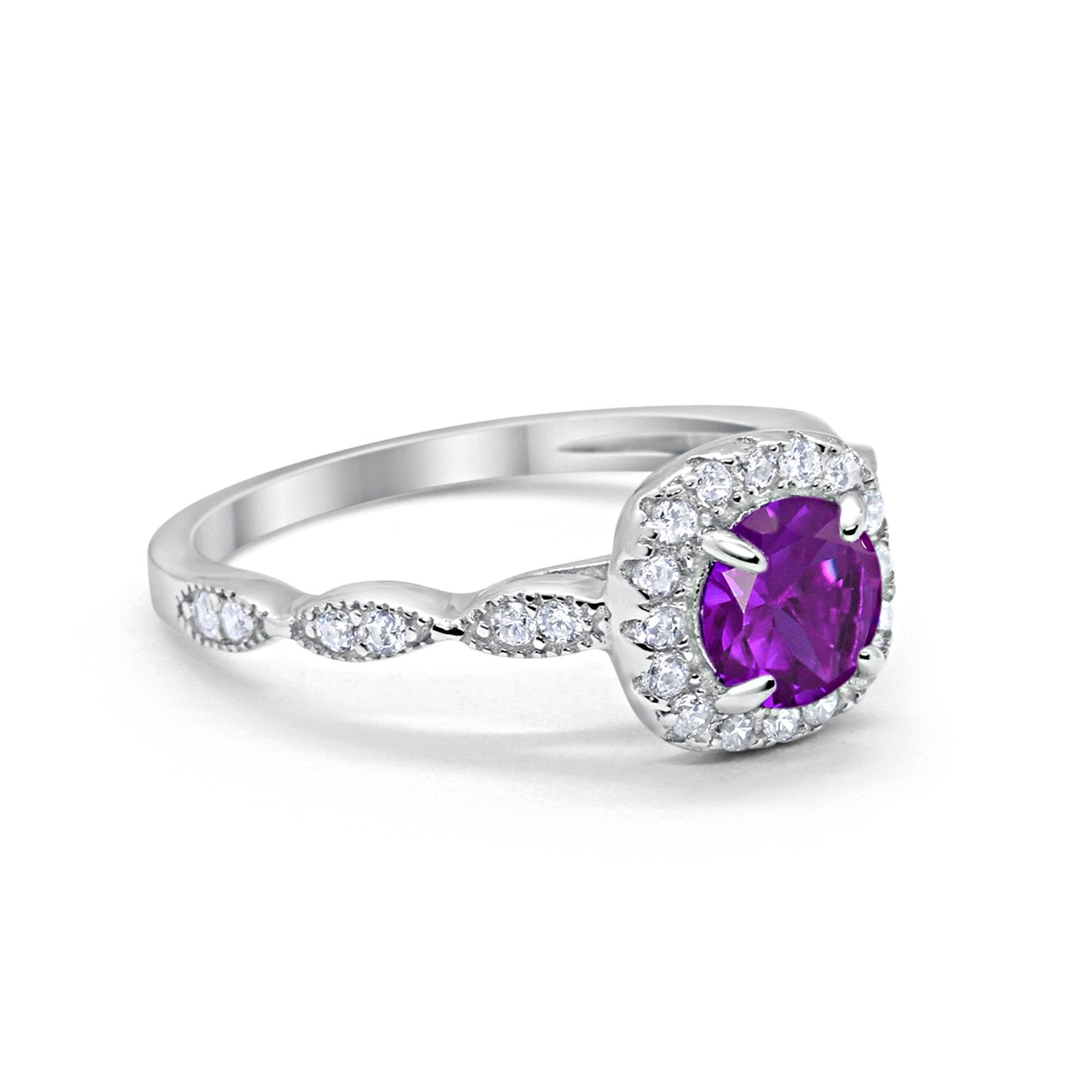 Art Deco Wedding Engagement Ring Round Simulated Amethyst CZ Solid 925 Sterling Silver