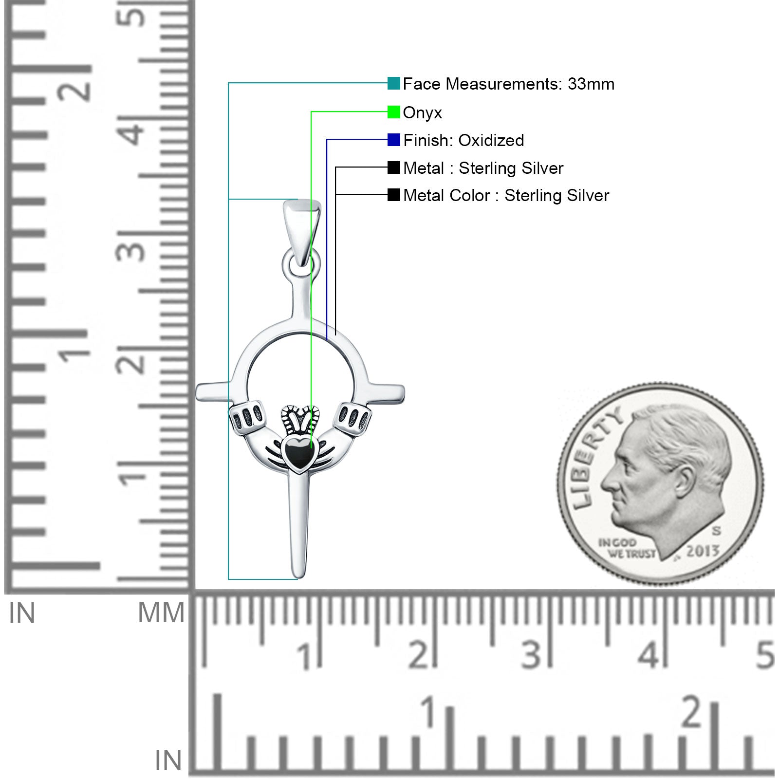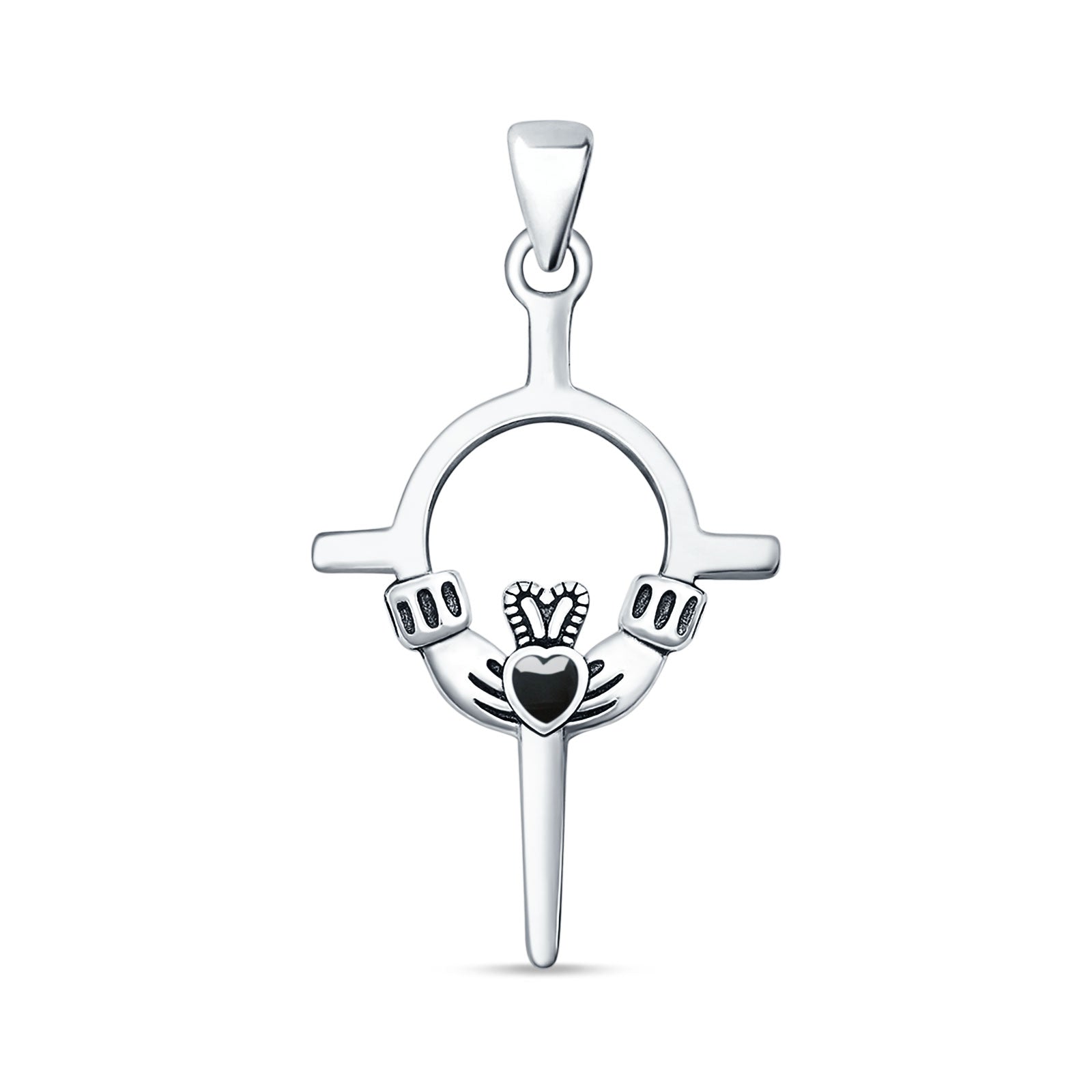 Black Onyx Claddagh Pendant Oxidized 925 Sterling Silver