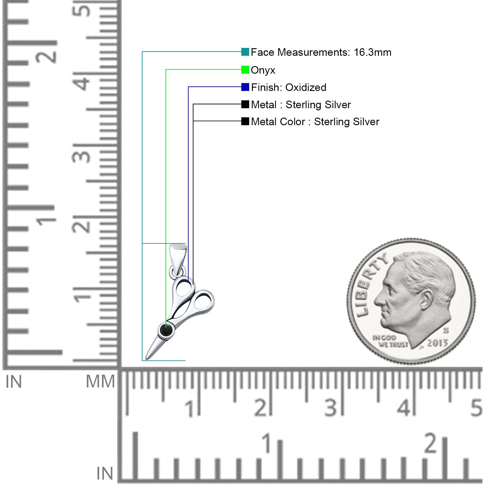 Black Onyx Scissors Pendant Oxidized 925 Sterling Silver