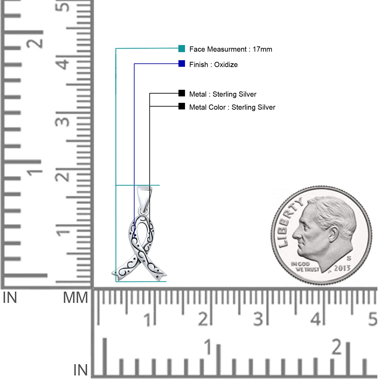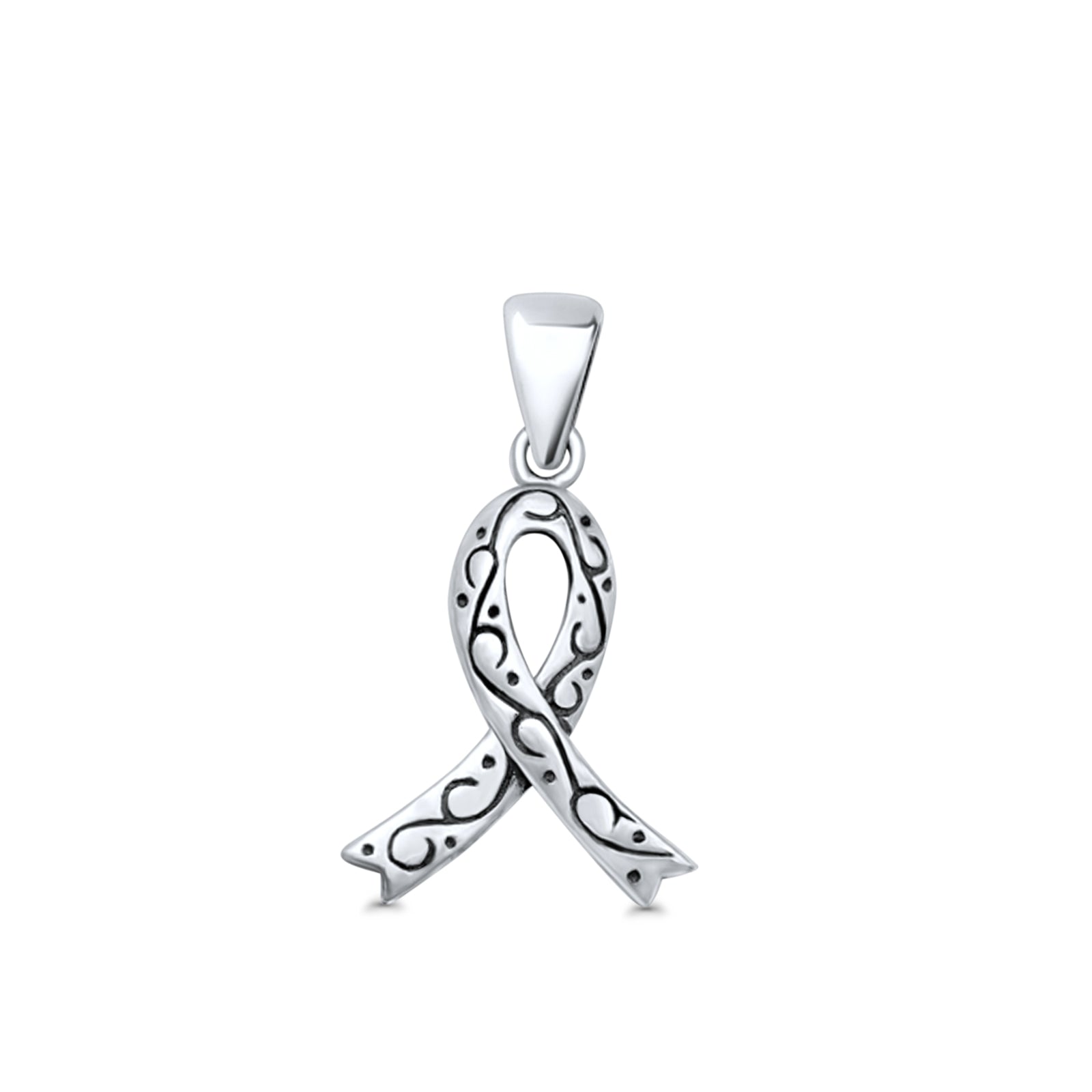 Breast Cancer Ribbon Pendant Oxidized 925 Sterling Silver Wholesale