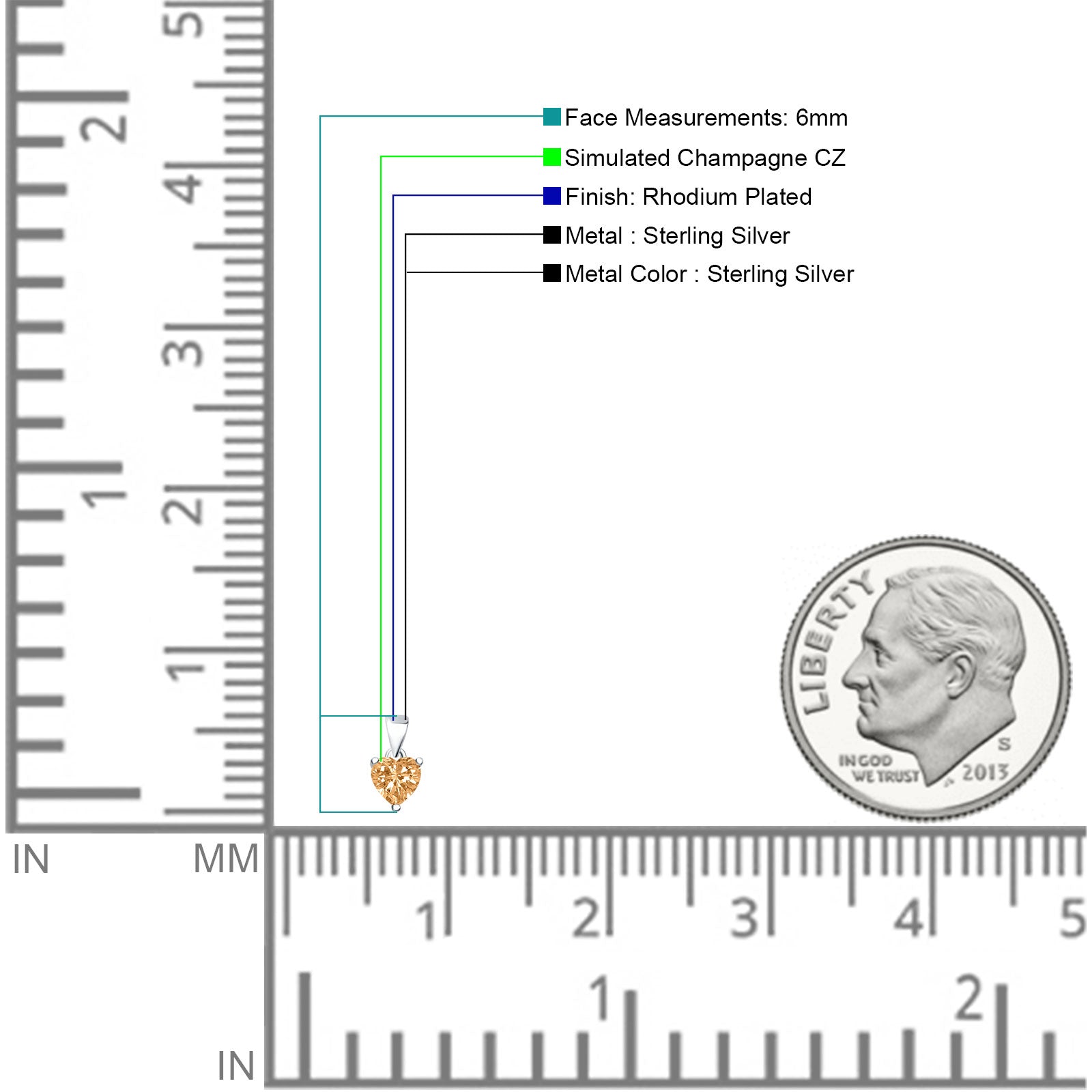 Champagne CZ Heart Pendant 925 Sterling Silver