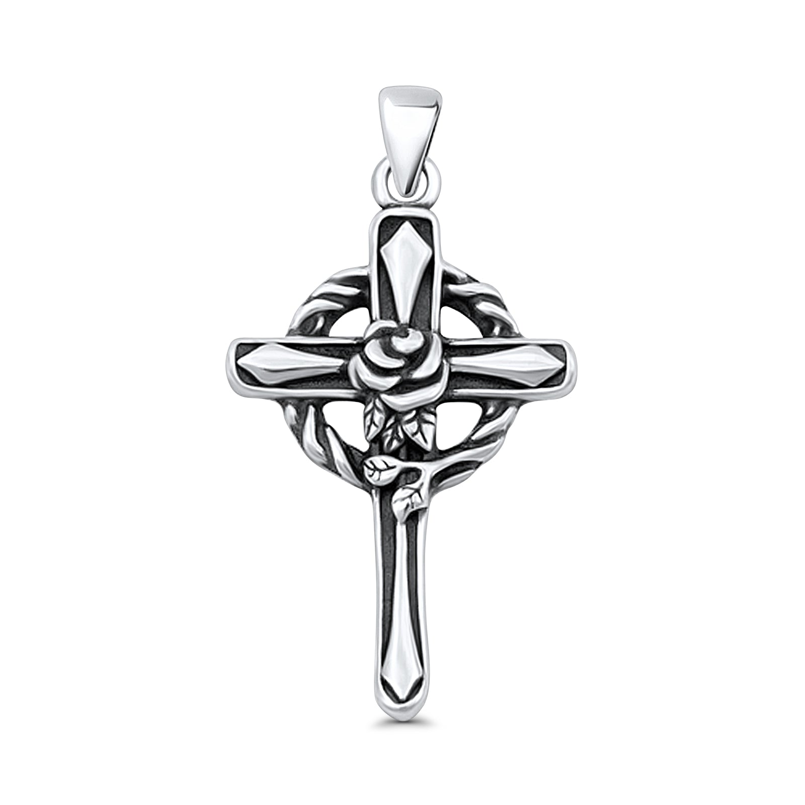 Cross & Rose Flower Pendant Oxidized 925 Sterling Silver Wholesale