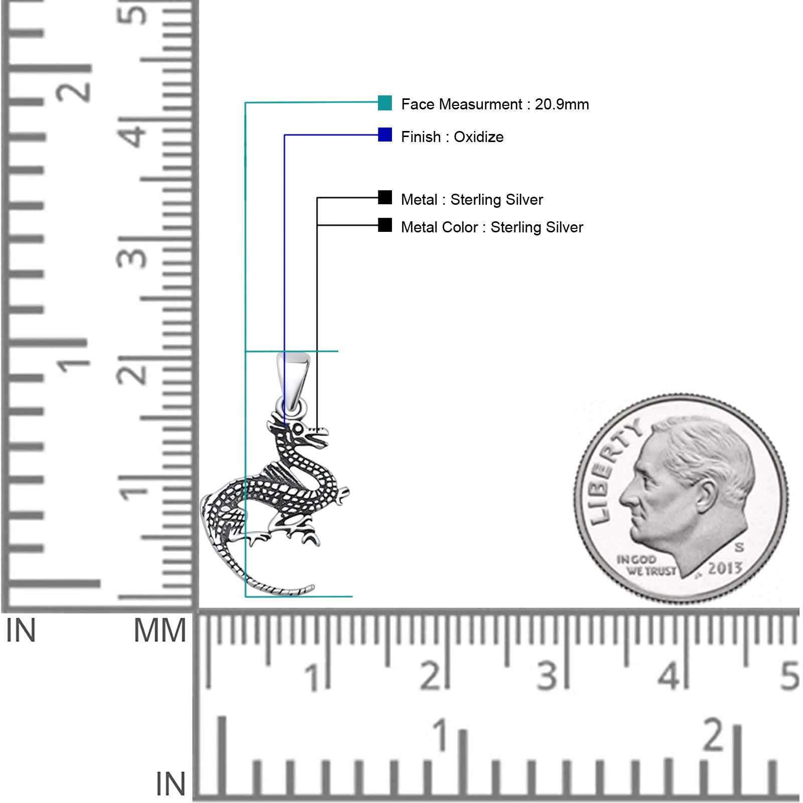 This dragon charm pendant necklace is crafted in 925 sterling silver with an oxidized vintage finish, showcasing bold nature-inspired detailing. The 20.9mm pendant symbolizes strength and protection, making it a versatile wholesale jewelry piece and a meaningful gift for women.