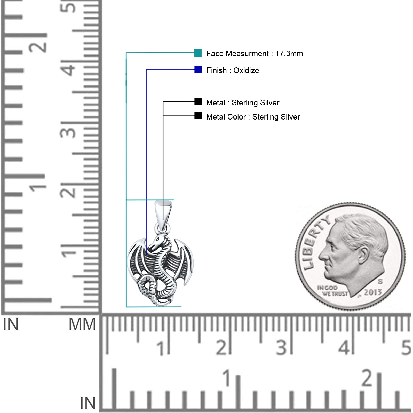This dragon pendant necklace embodies strength and elegance, handcrafted in solid 925 sterling silver with a detailed dragon design. The oxidized vintage finish highlights its bold texture, while the 17.3mm pendant hangs gracefully from a sleek silver chain making it a striking and meaningful gift for her.