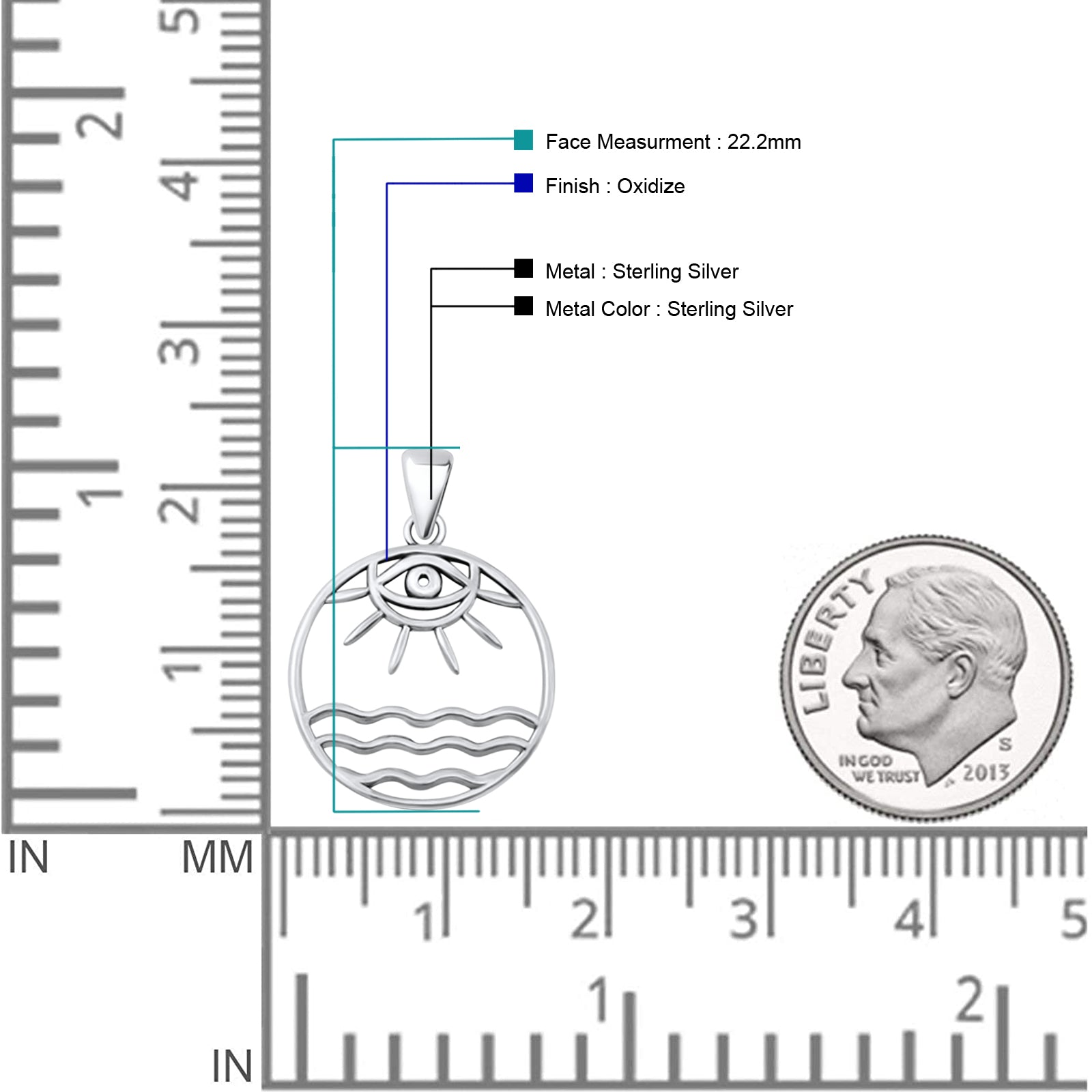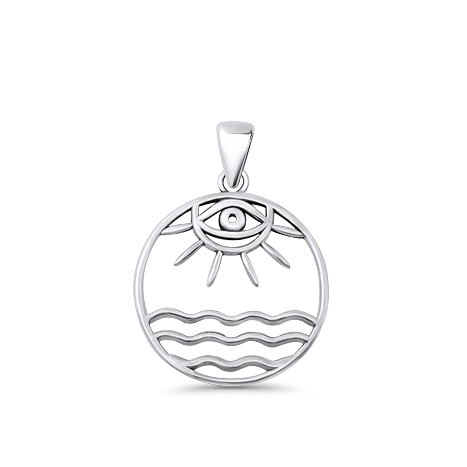 Evil Eye, Sun & Water Pendant Oxidized 925 Sterling Silver Wholesale