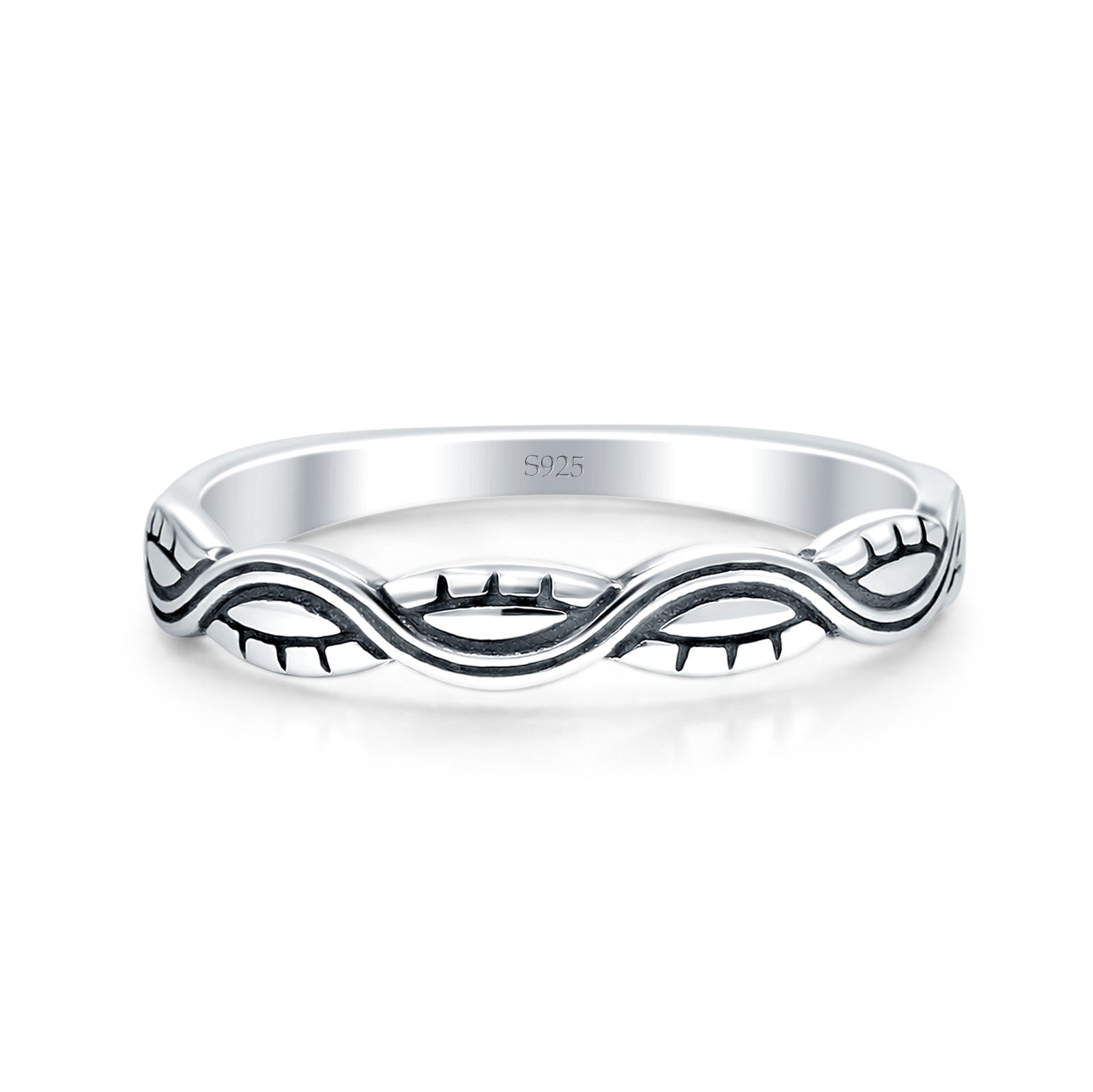 Evil Eye Wave Band Oxidized 925 Sterling Silver Wholesale