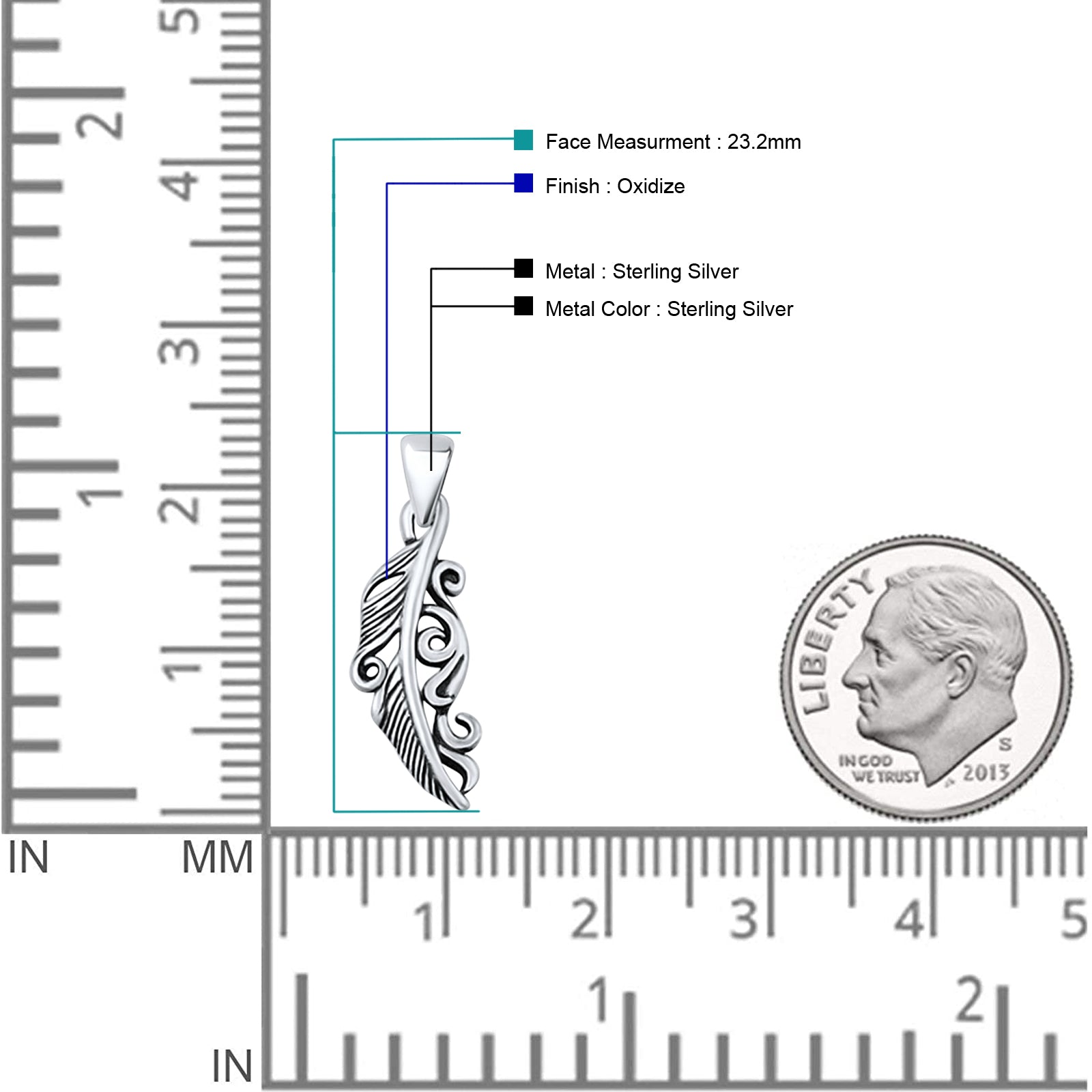 ☉ Pendant Length: 23.2mm(0.91 inch)