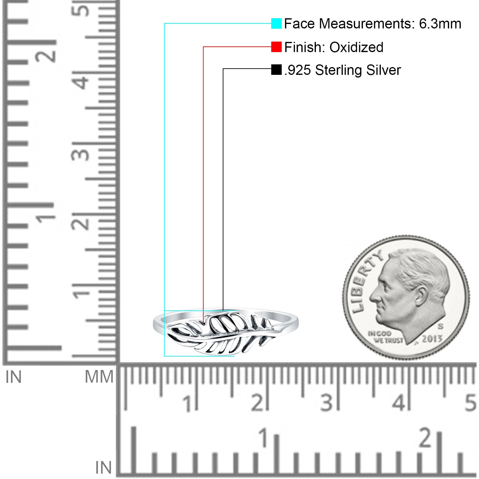 This ring is made of 925 sterling silver, features an oxidized filigree finish and has an intricate 6.3mm feather design. This provides an elegant minimalist statement of style when worn as an everyday accessory as well as bohemian style and for women that enjoy nature-inspired silver jewelry.