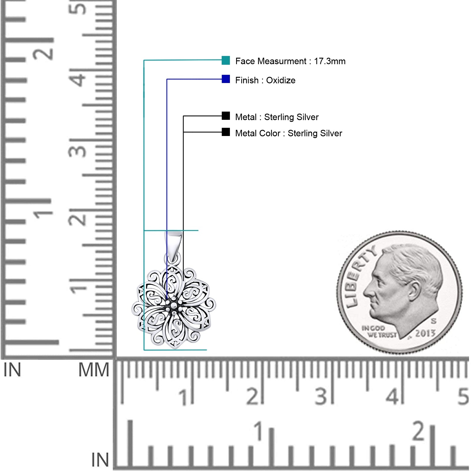 This flower charm pendant necklace is crafted in oxidized 925 sterling silver with a detailed vintage finish. Measuring 17.3mm, it combines durability with timeless floral elegance, making it a versatile and appealing wholesale option for women’s silver jewelry collections.