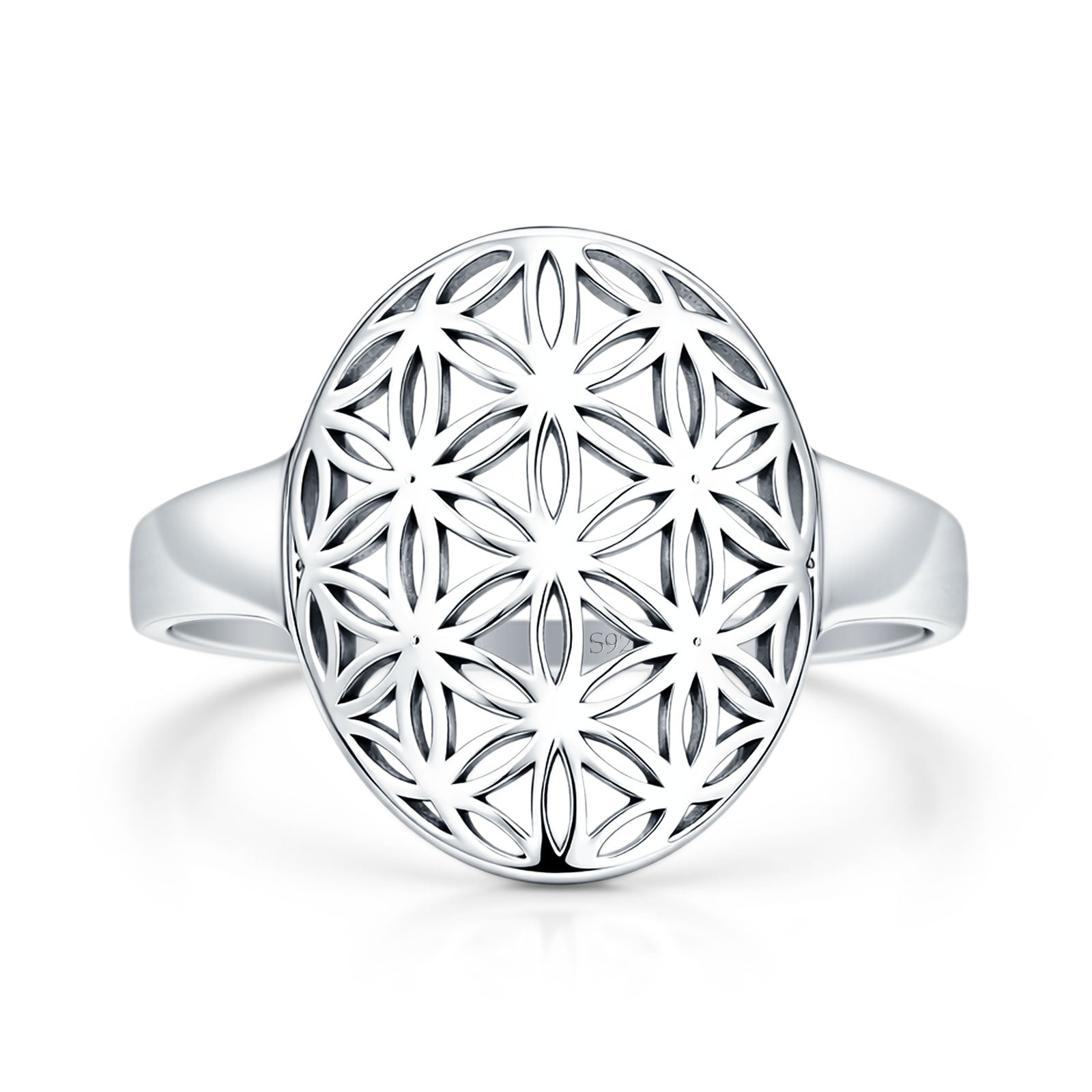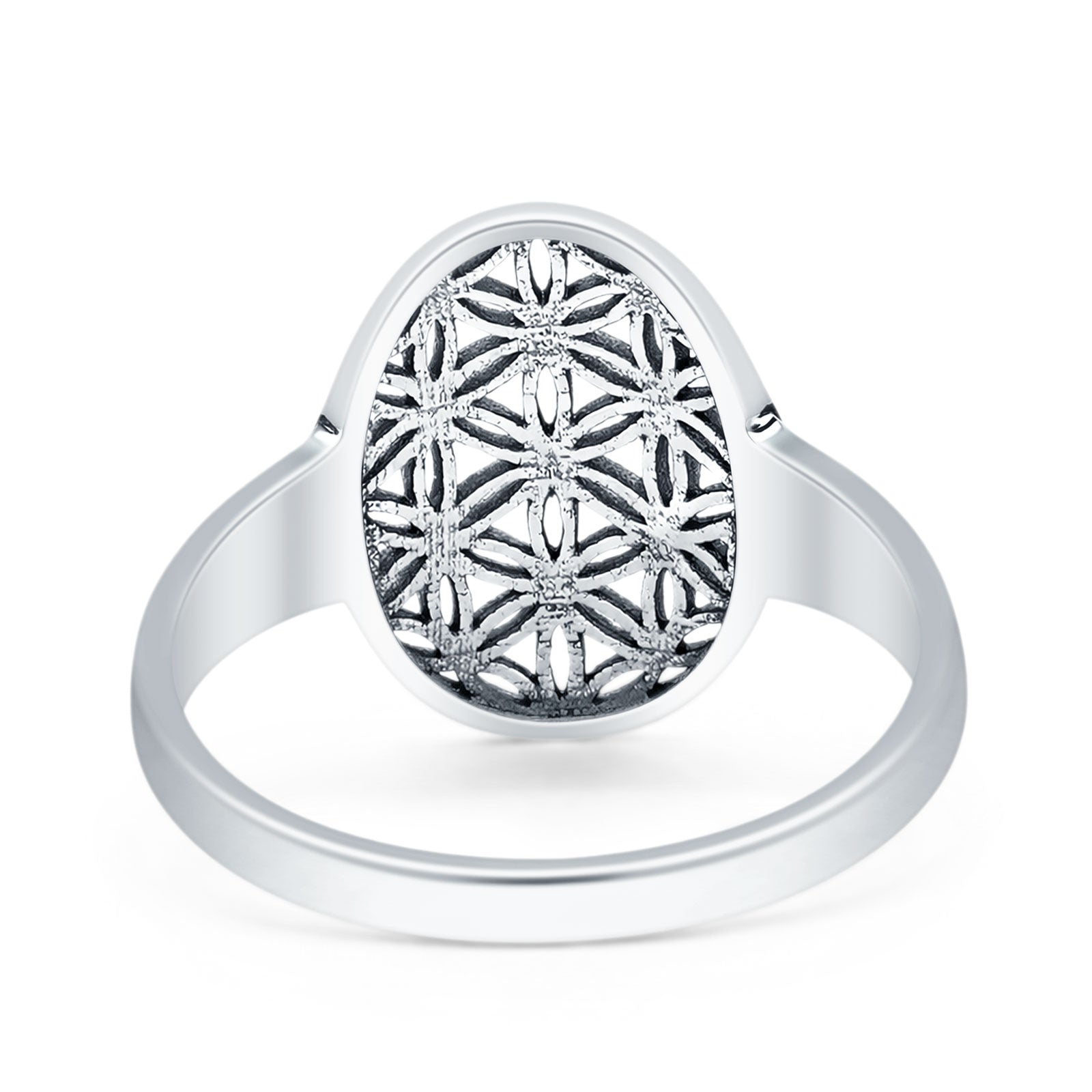 Add timeless meaning and elegant detail to your style with this flower of life ring for women, crafted in genuine 925 sterling silver with an oxidized vintage finish. The 15.6mm oval face features an intricate filigree flower of life design that brings symbolic beauty and a graceful statement look. Lightweight and comfortable, this dainty ring is perfect for everyday wear, stacking, or gifting.
