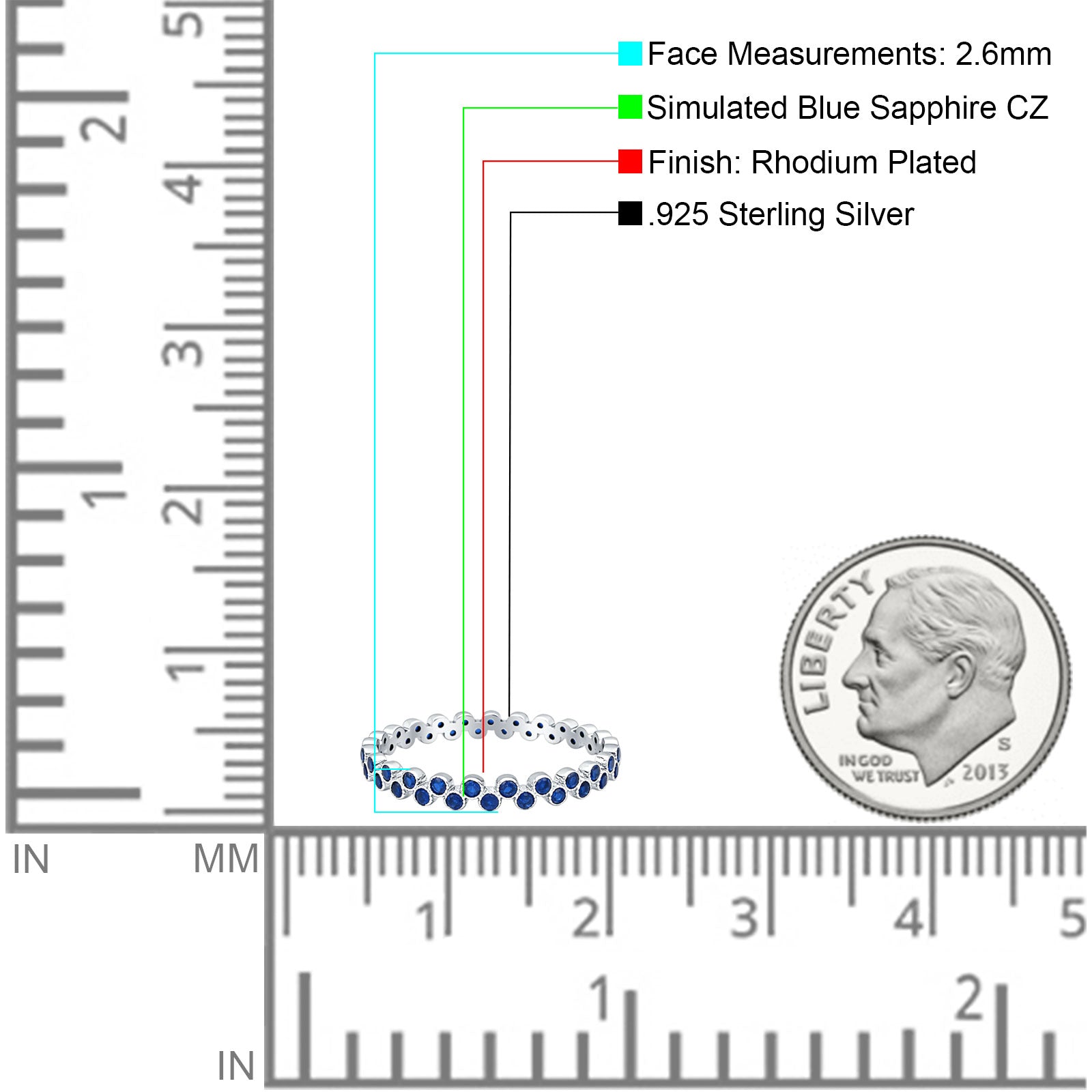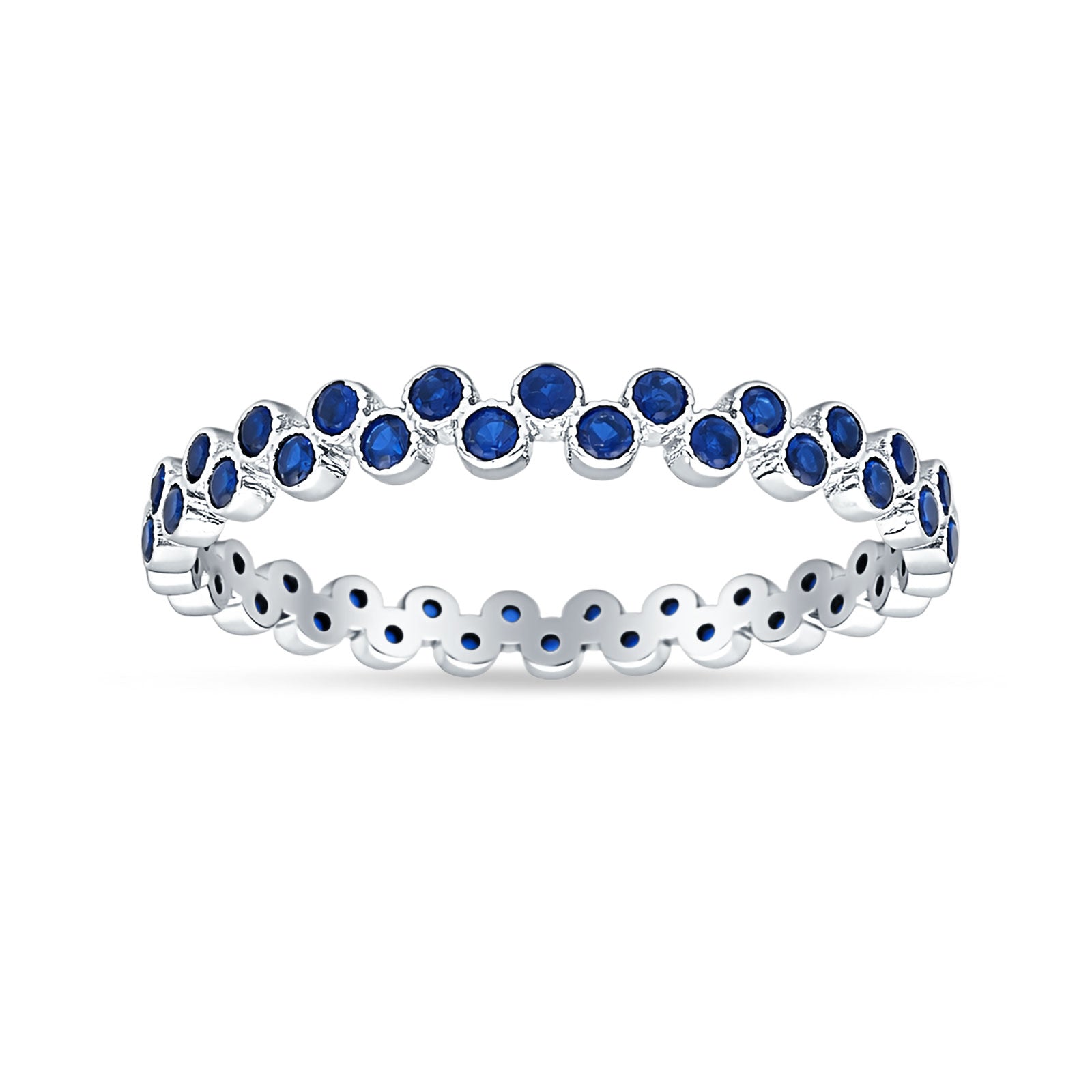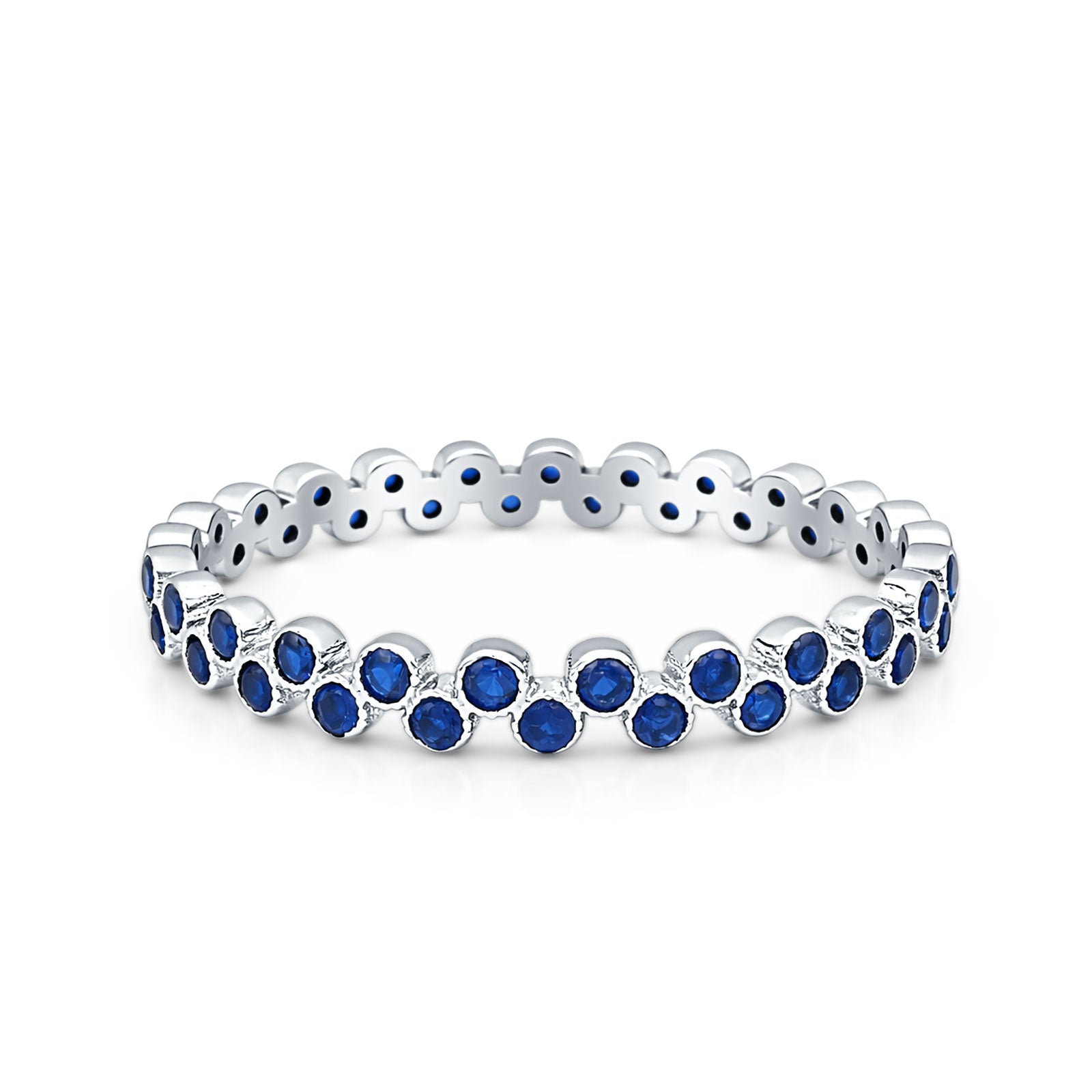 Full Eternity Round CZ Zig Zag Band Blue Sapphire CZ 925 Sterling Silver Wholesale