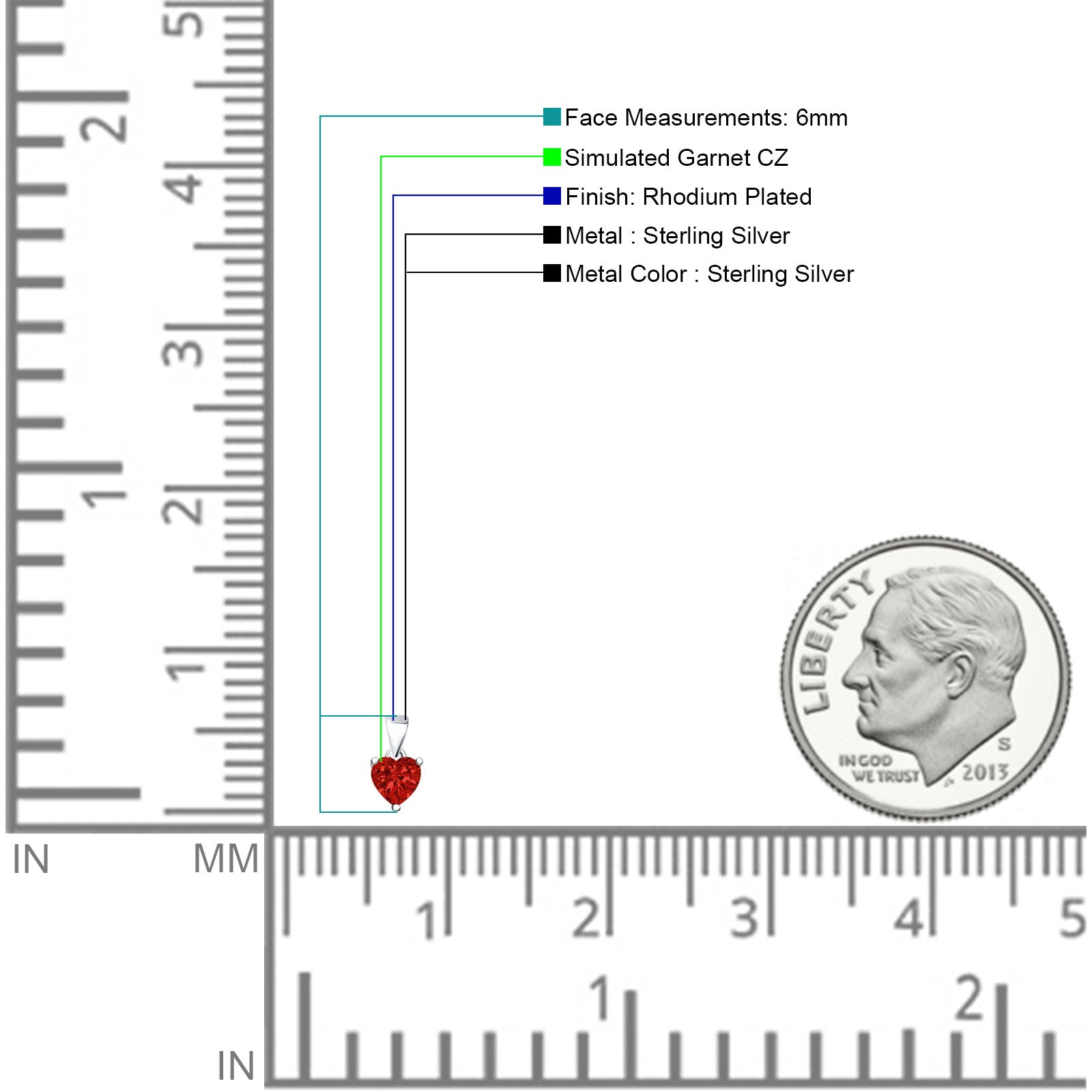 Garnet CZ Heart Pendant 925 Sterling Silver