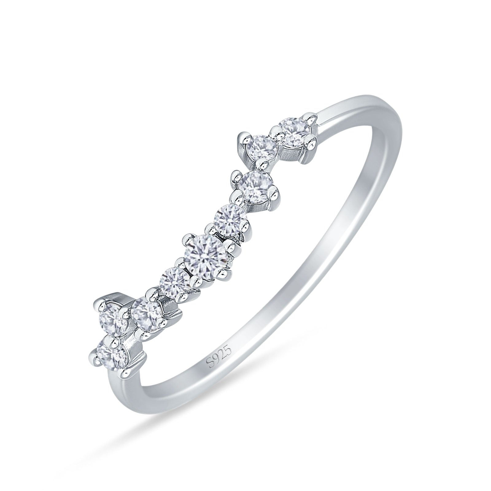 Half Eternity Round Cubic Zirconia Contour Band 925 Sterling Silver Wholesale