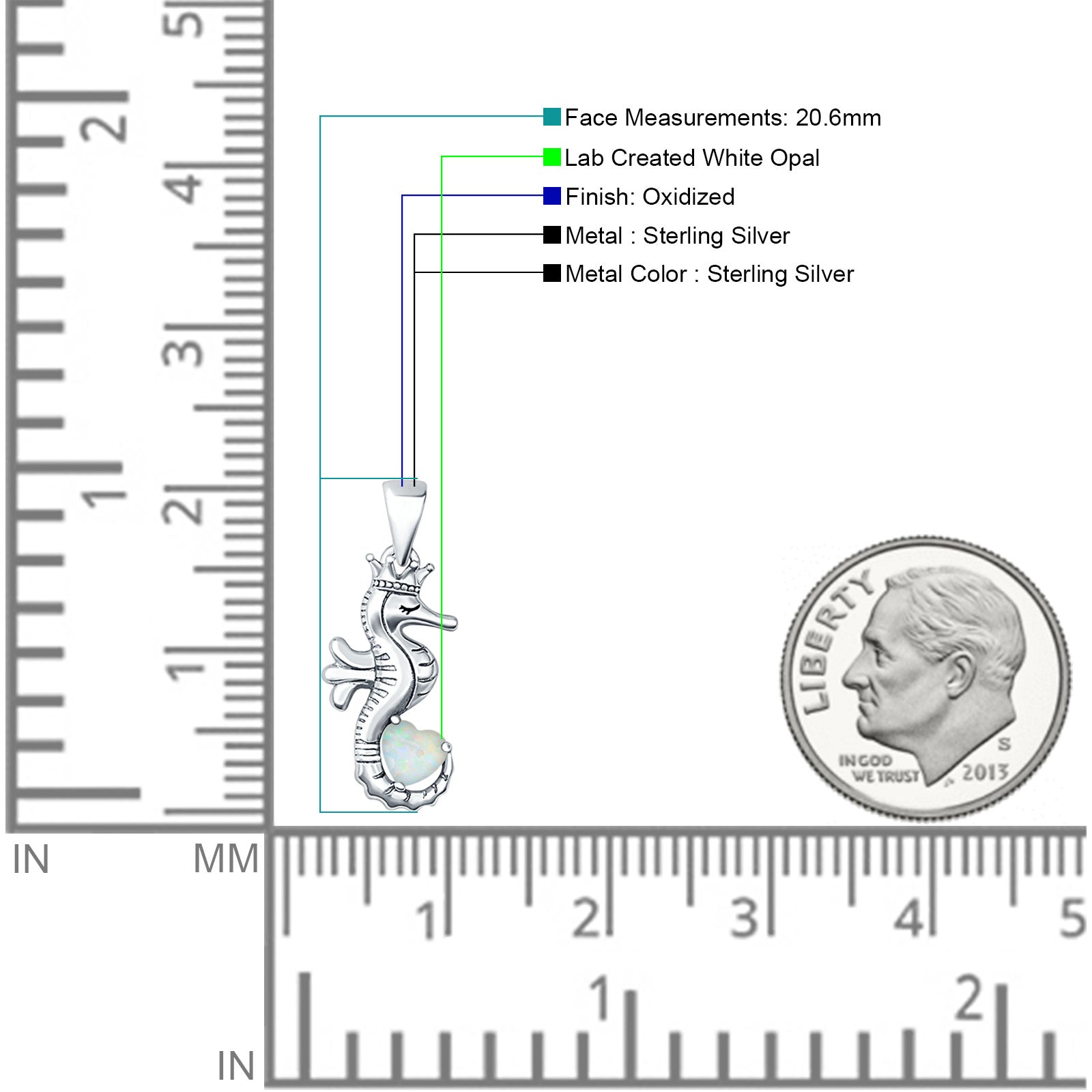 ☉ Style: Lab Created White Opal Seahorse Pendant