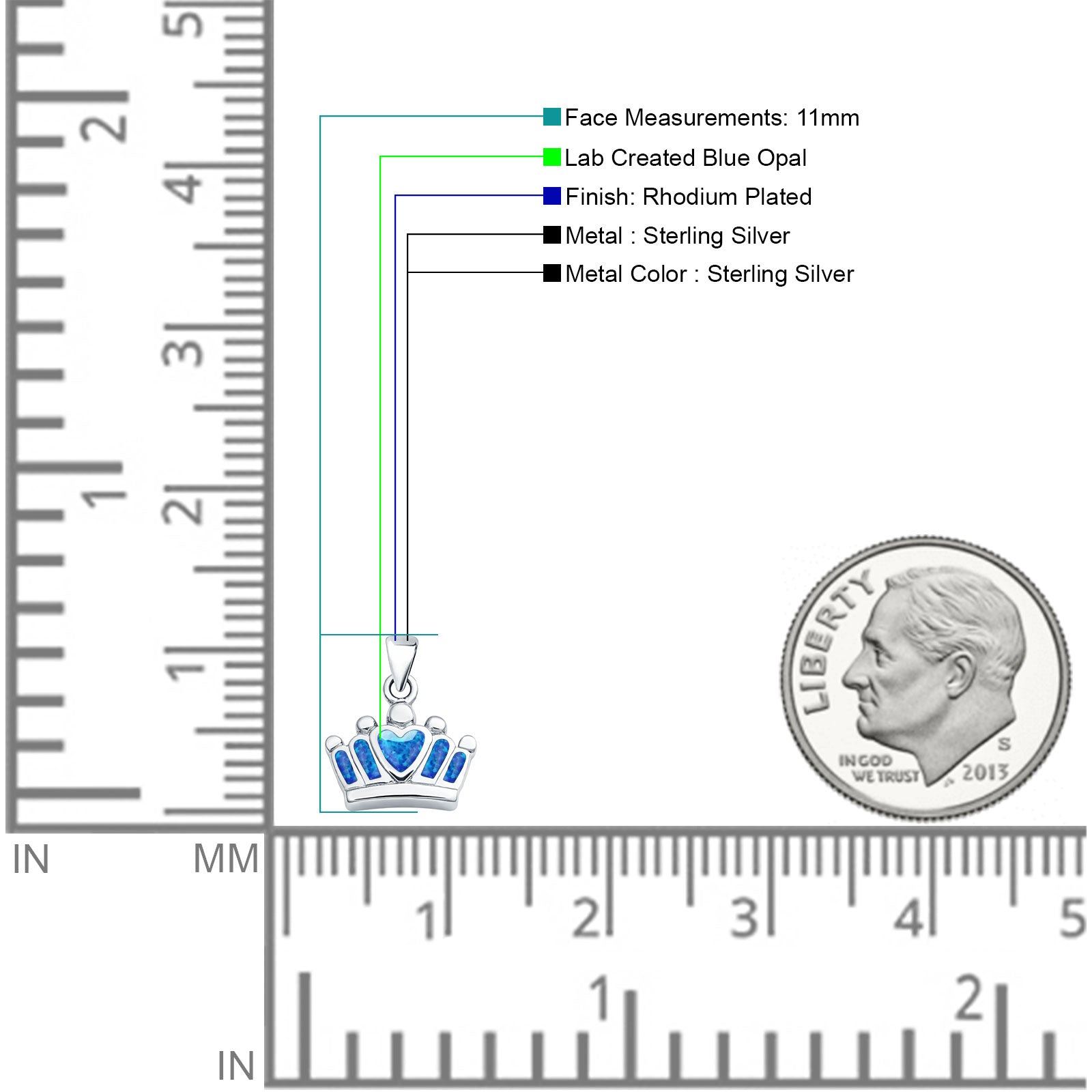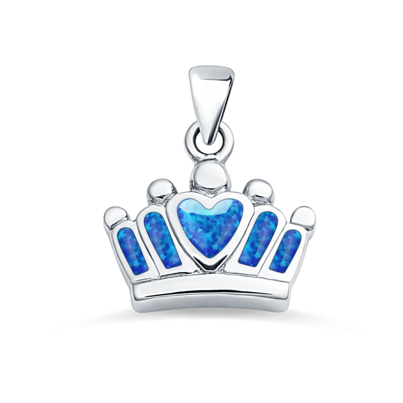 Lab Created Blue Opal Crown Pendant 925 Sterling Silver