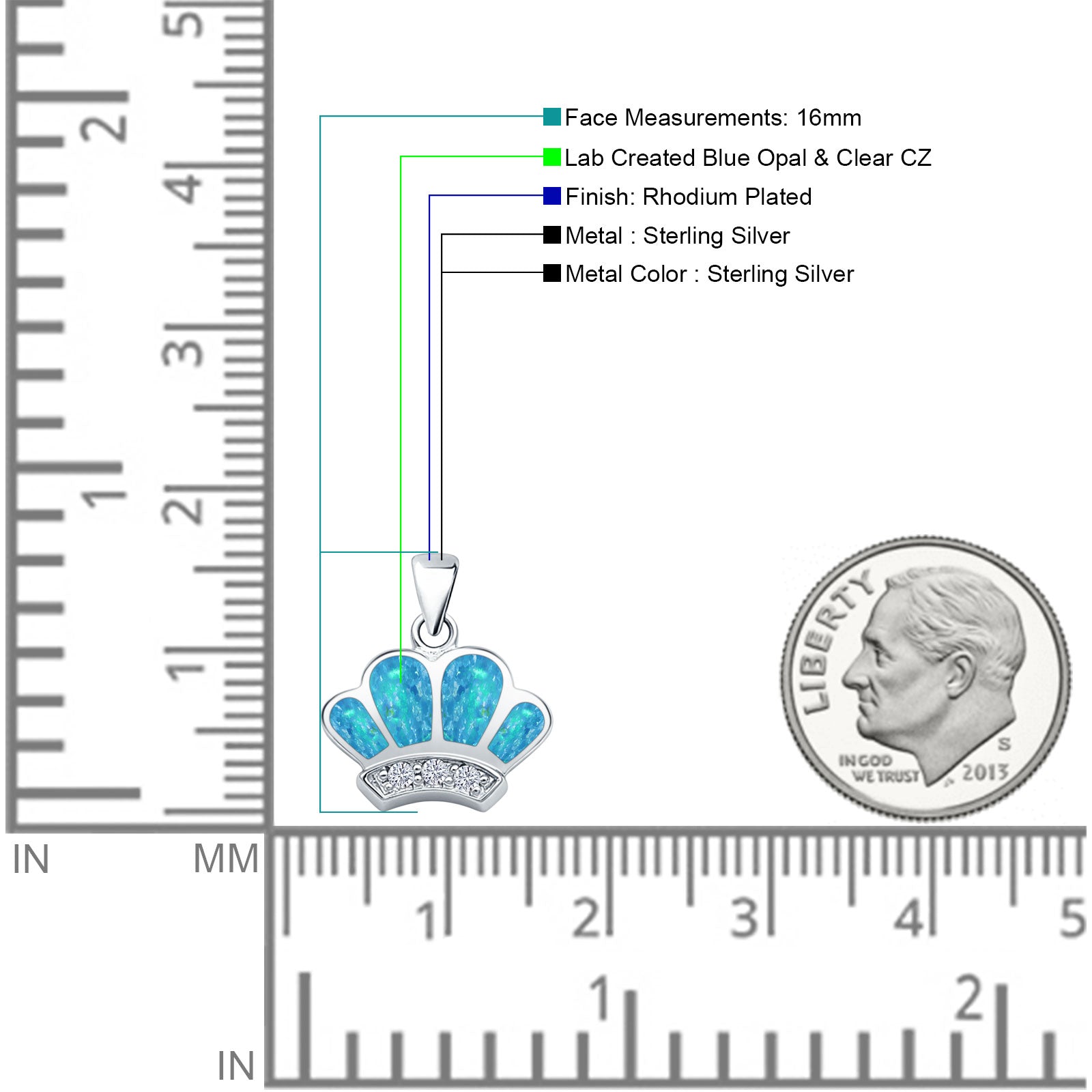 Lab Created Blue Opal Crown Pendant 925 Sterling Silver