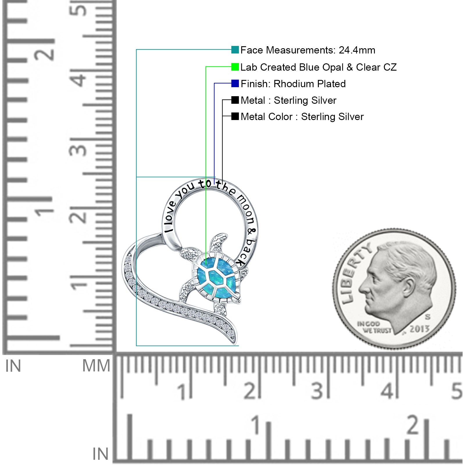 ☉ Style: Lab Created Blue Opal & CZ Turtle & Heart Pendant