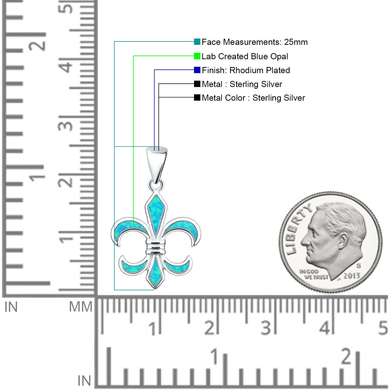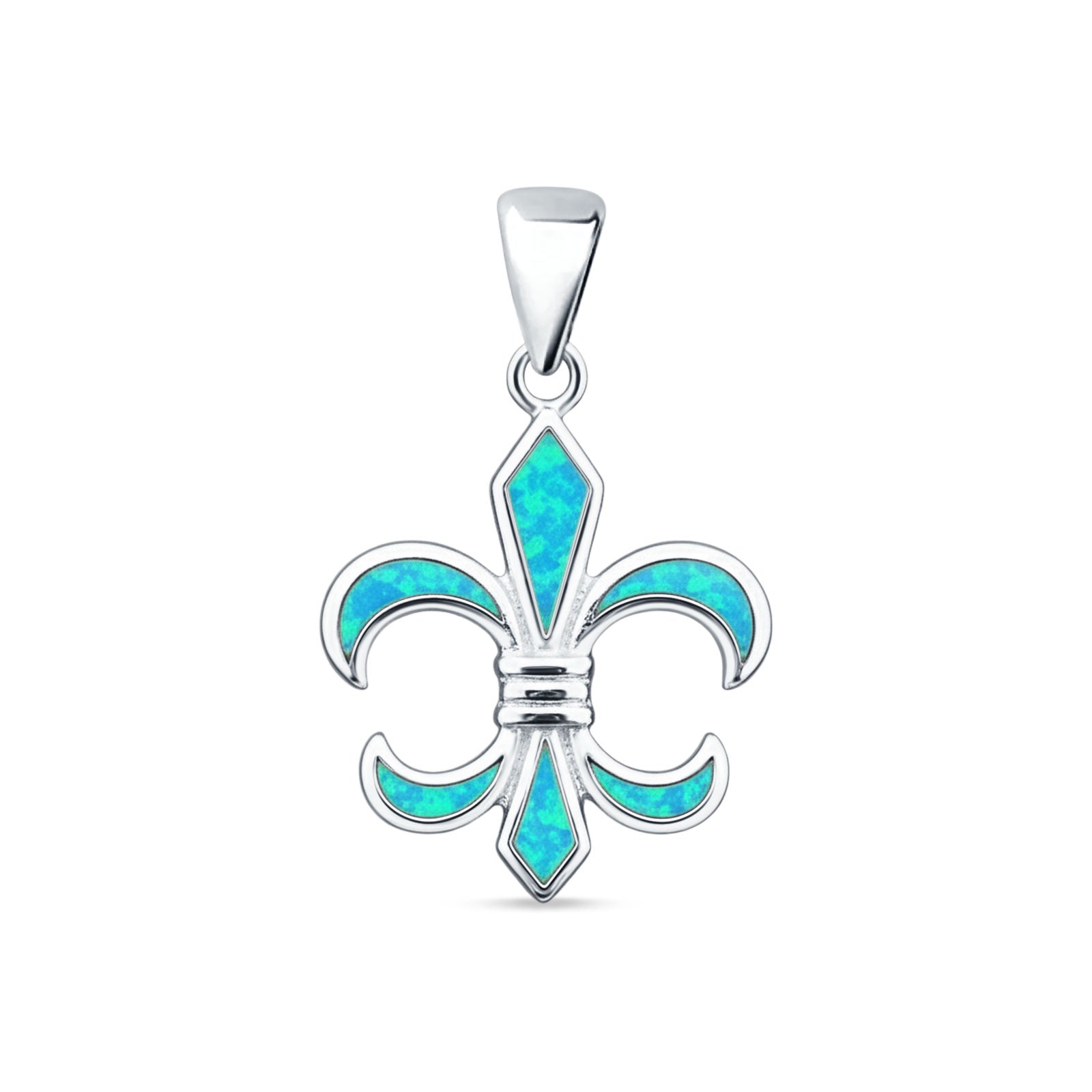 ☉ Style: Lab Created Blue Opal Fleur De Lis Pendant
