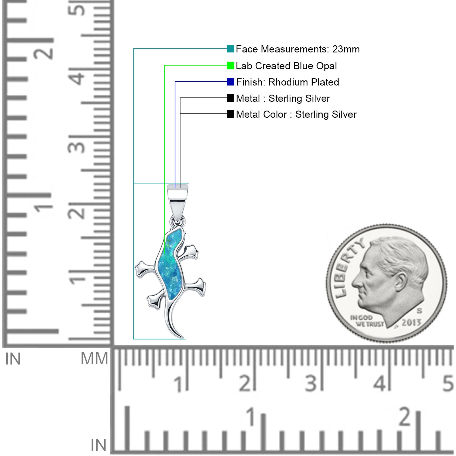 Lab Created Blue Opal Lizard Pendant 925 Sterling Silver