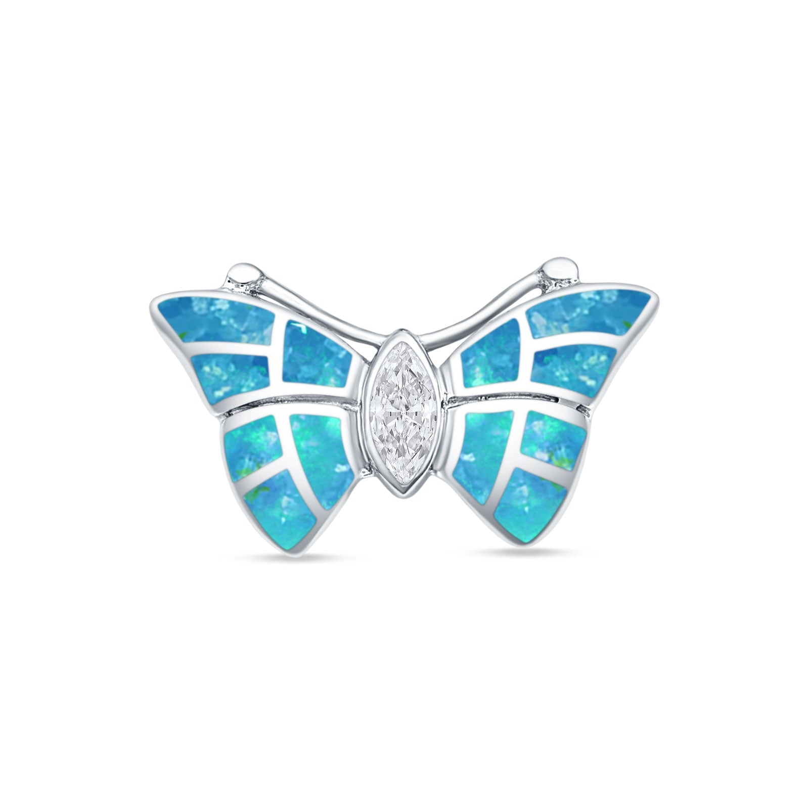 ☉ Style: Lab Created Blue Opal Opal & Marquise CZ Butterfly Pendant