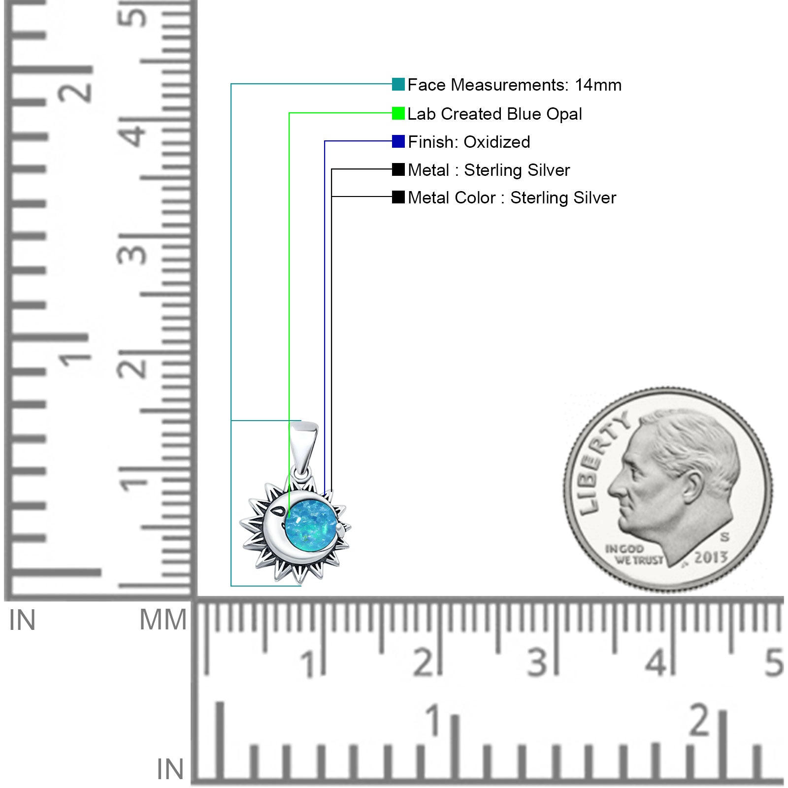 ☉ Style: Lab Created Blue Opal Moon & Sun Pendant
