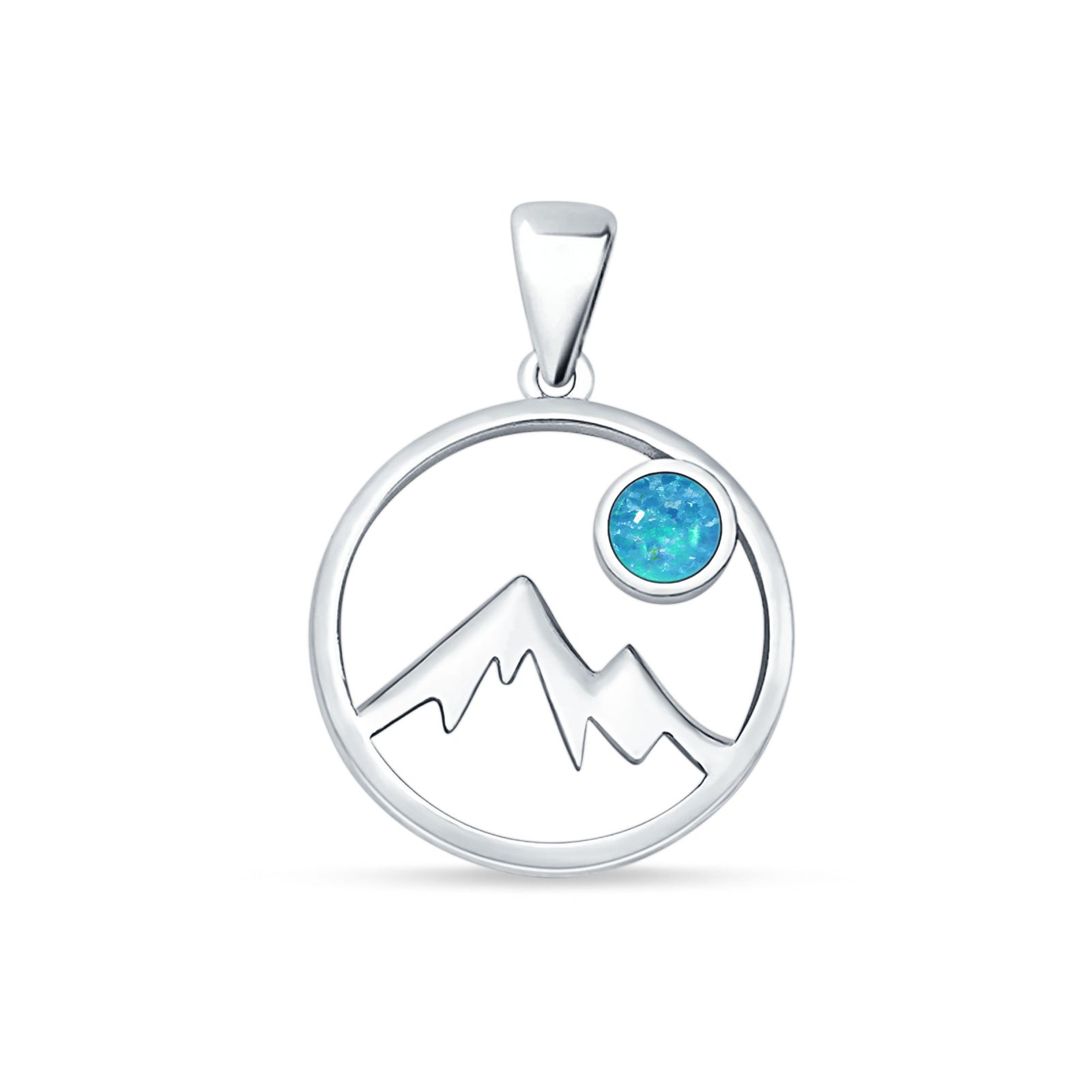 ☉ Style: Lab Created Blue Opal Mountains & Moon Pendant
