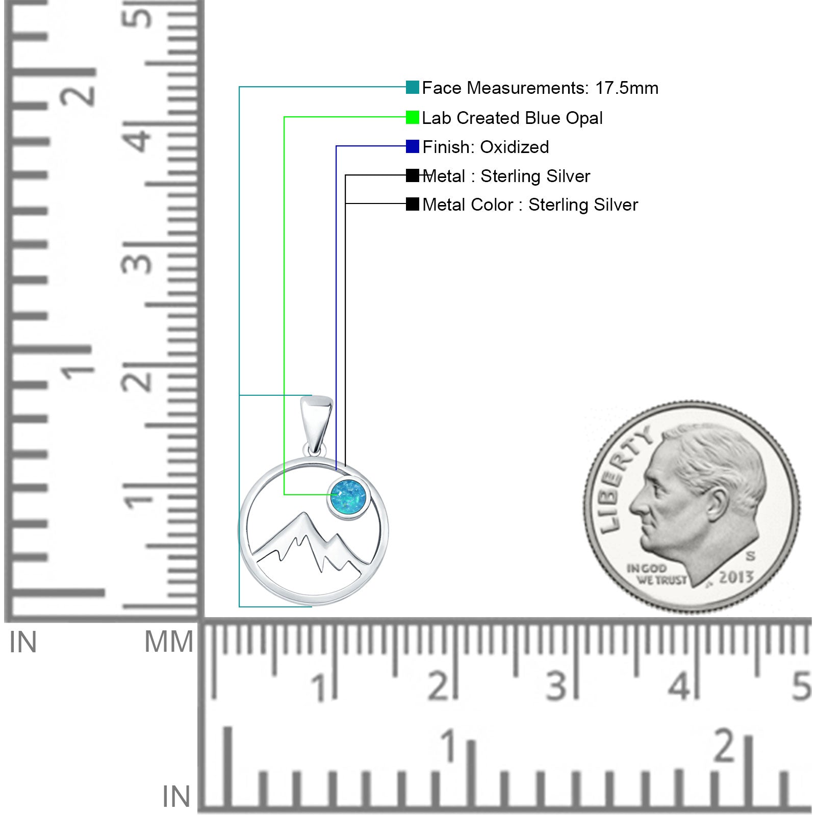 The round blue opal mountains & moon pendant necklace is crafted in 925 sterling silver with an oxidized vintage finish, featuring a 17.5mm design of glowing lab-created blue opal, moon, and mountain details. Symbolizing balance and inspiration, this elegant piece is perfect for daily wear or gifting.