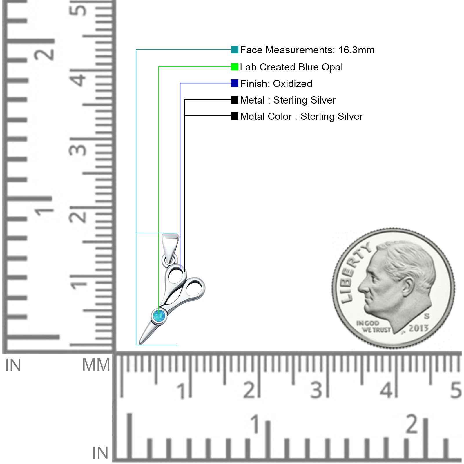 Lab Created Blue Opal Scissors Pendant Oxidized 925 Sterling Silver