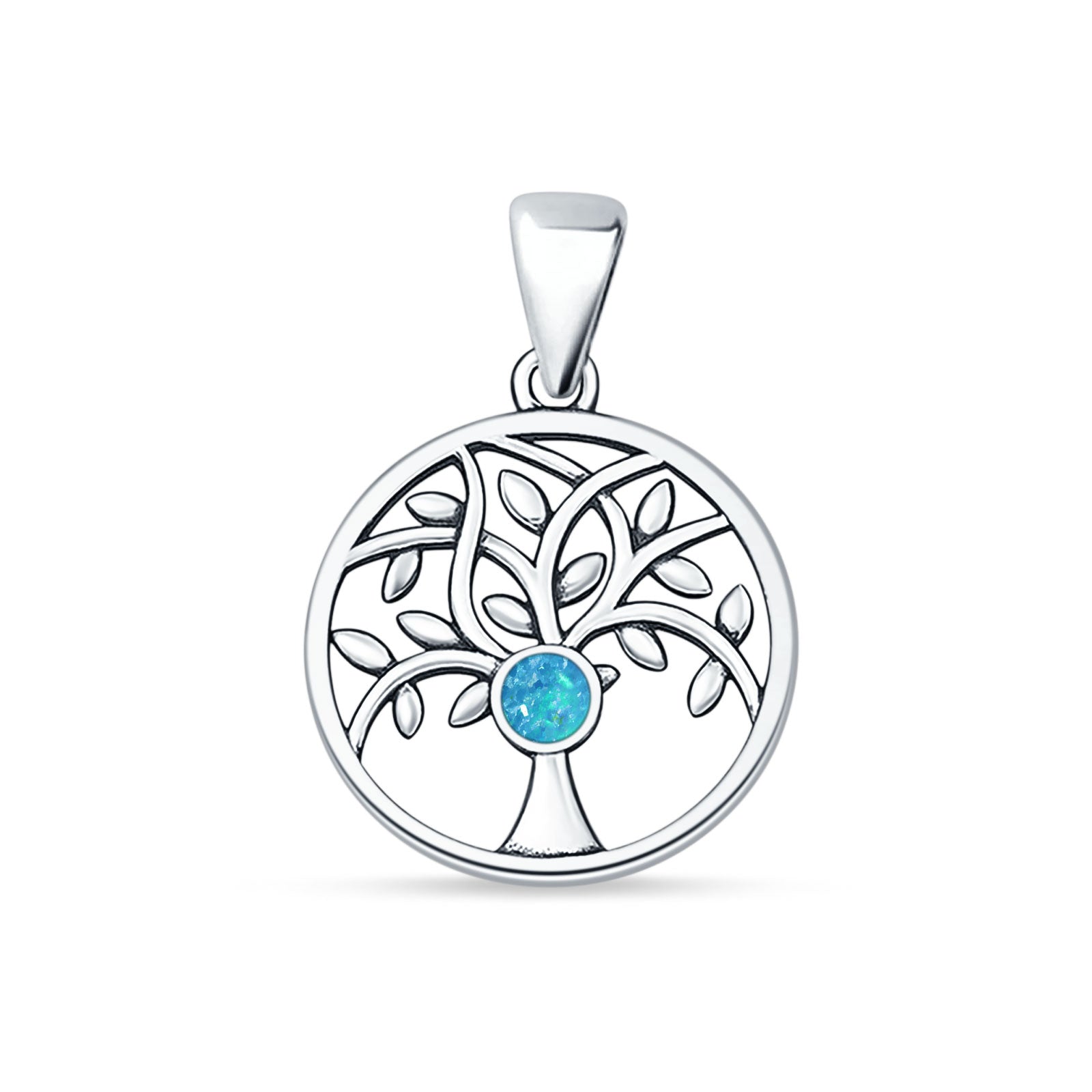 ☉ Style: Lab Created Blue Opal Tree Of Life Pendant