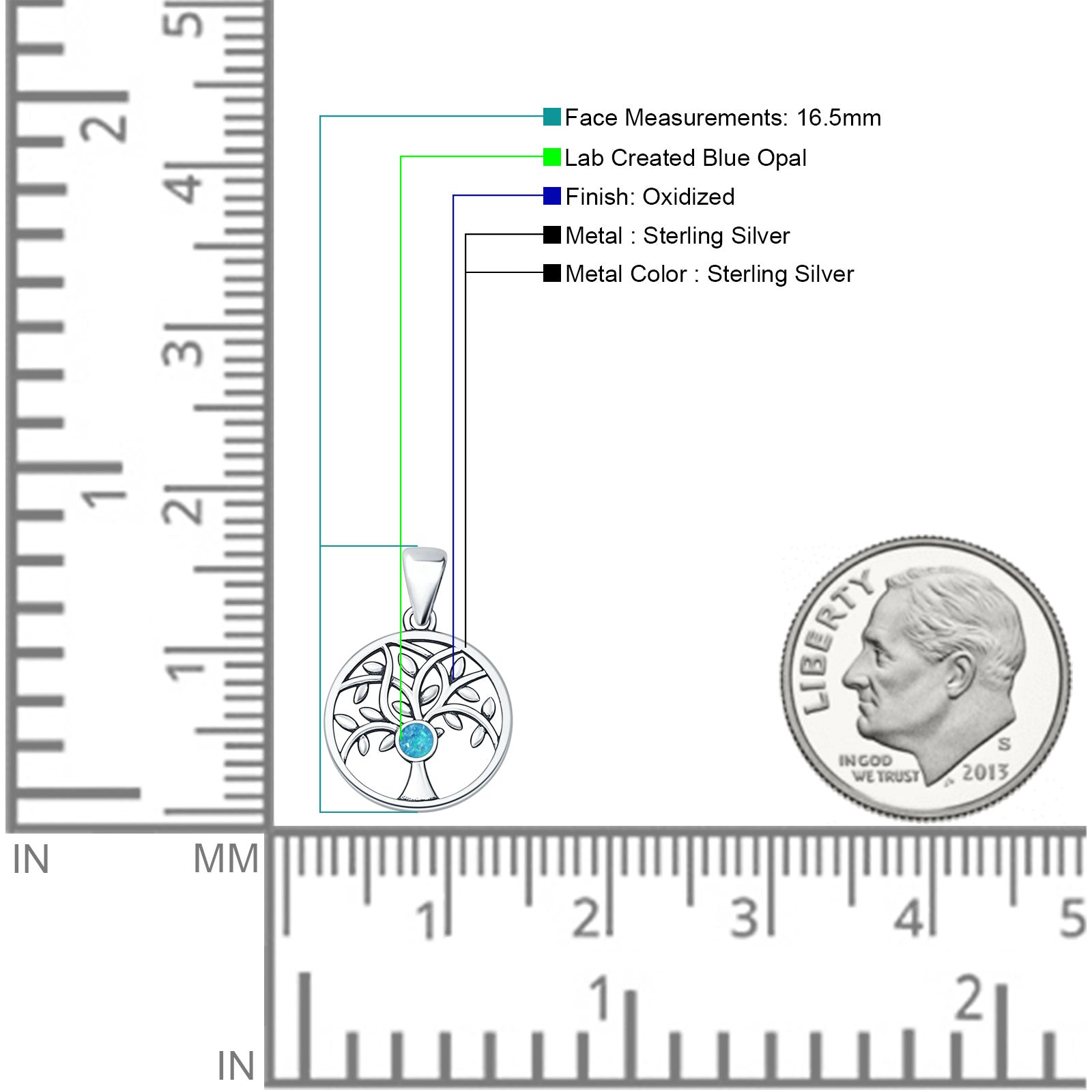 This round lab created blue opal tree of life pendant necklace shines with a vibrant opal set in 925 sterling silver with an oxidized vintage finish. The 16.5mm pendant symbolizes growth and harmony, making it a meaningful and elegant gift for her.