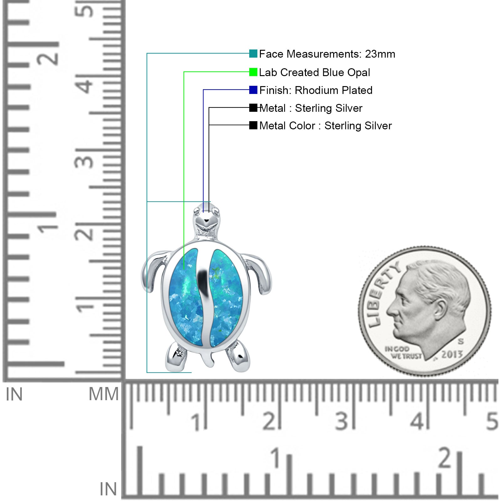 Lab Created Blue Opal Turtle Pendant 925 Sterling Silver