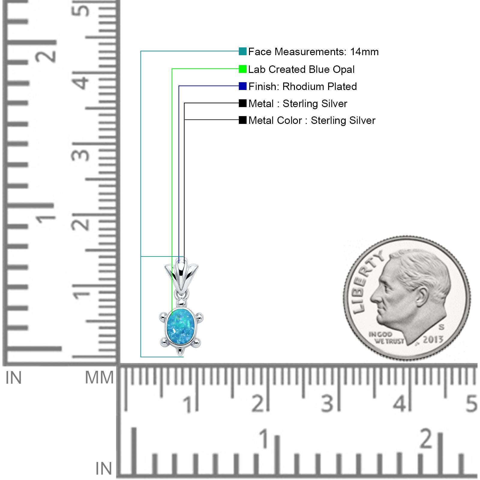 Lab Created Blue Opal Turtle Pendant 925 Sterling Silver
