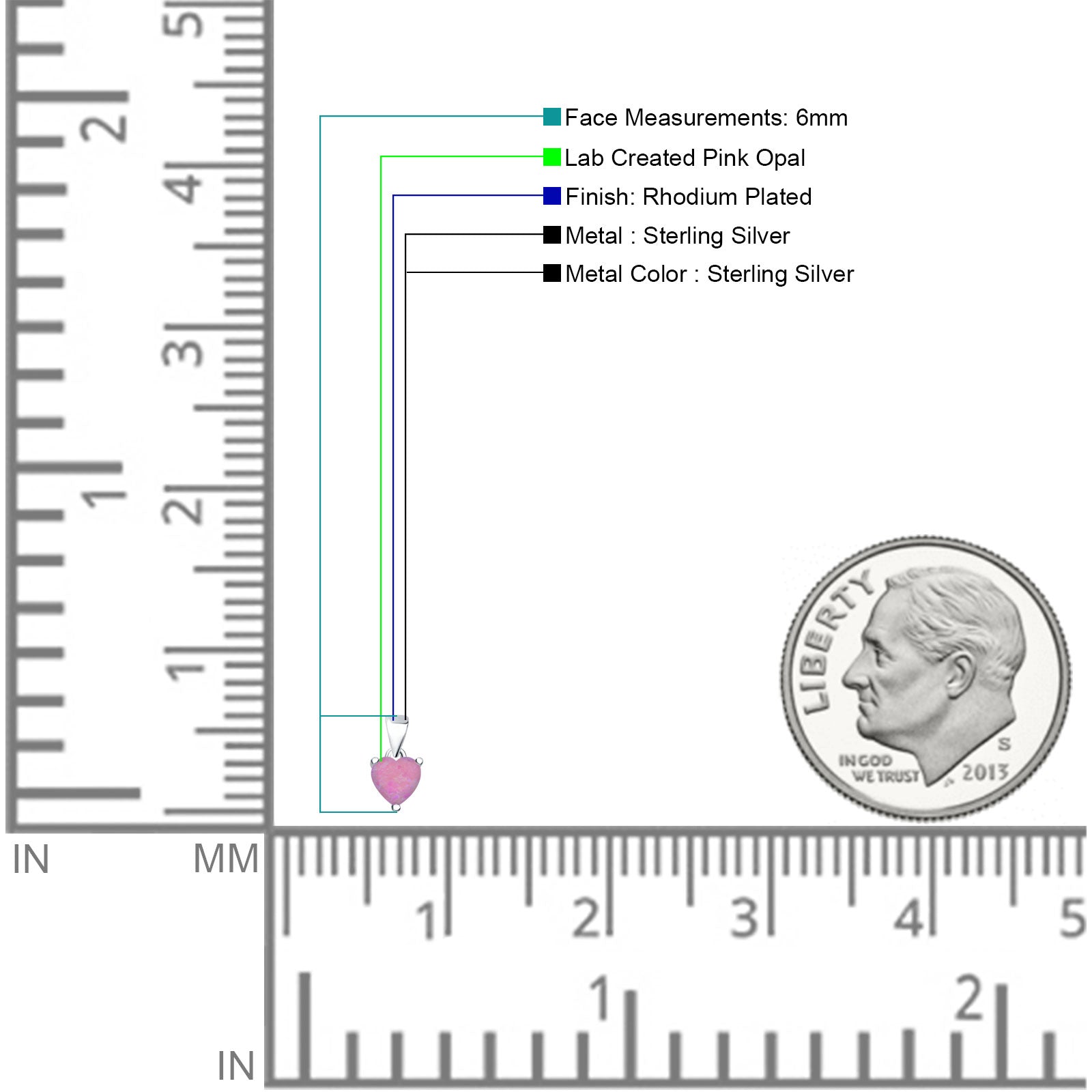 Lab Created Pink Opal Heart Pendant 925 Sterling Silver