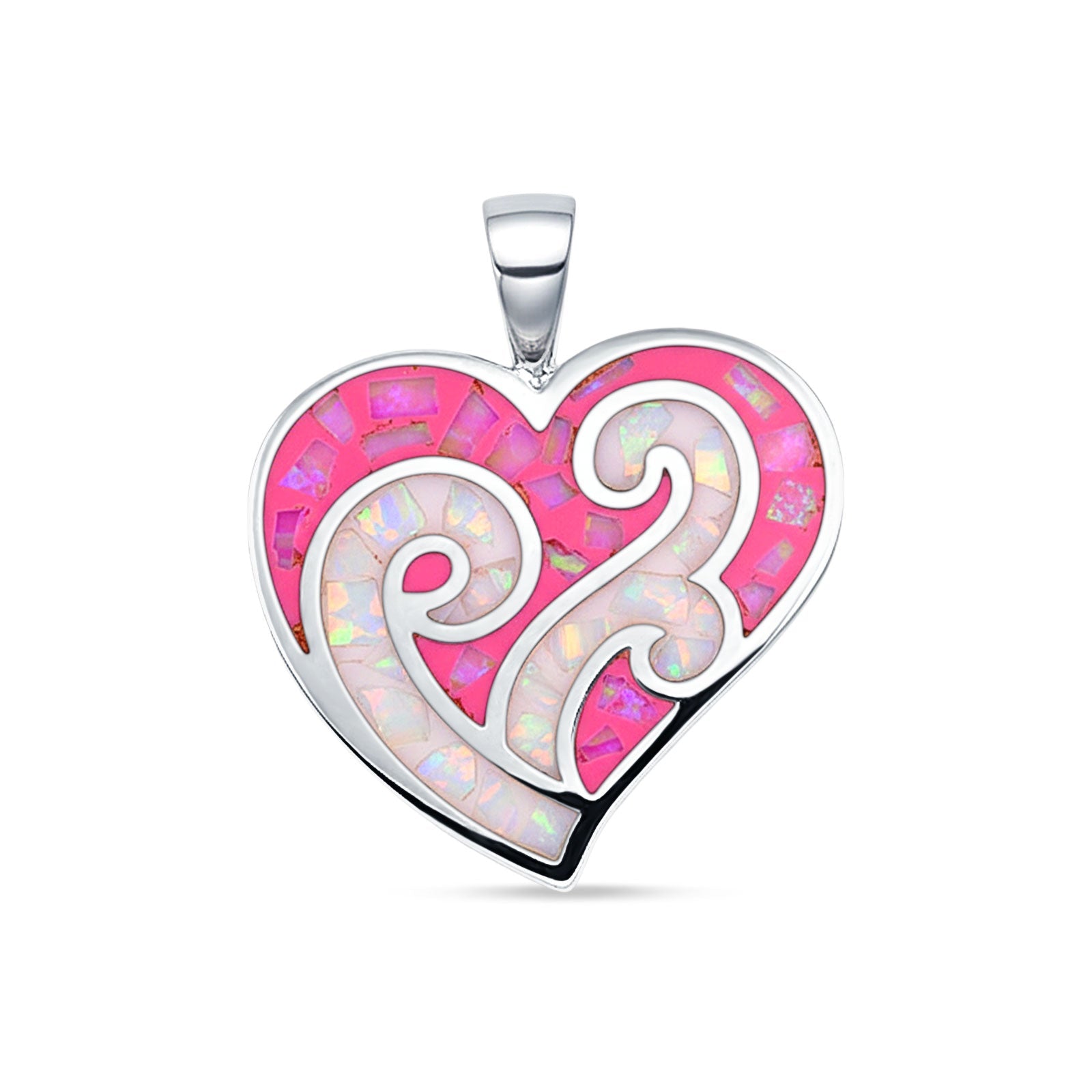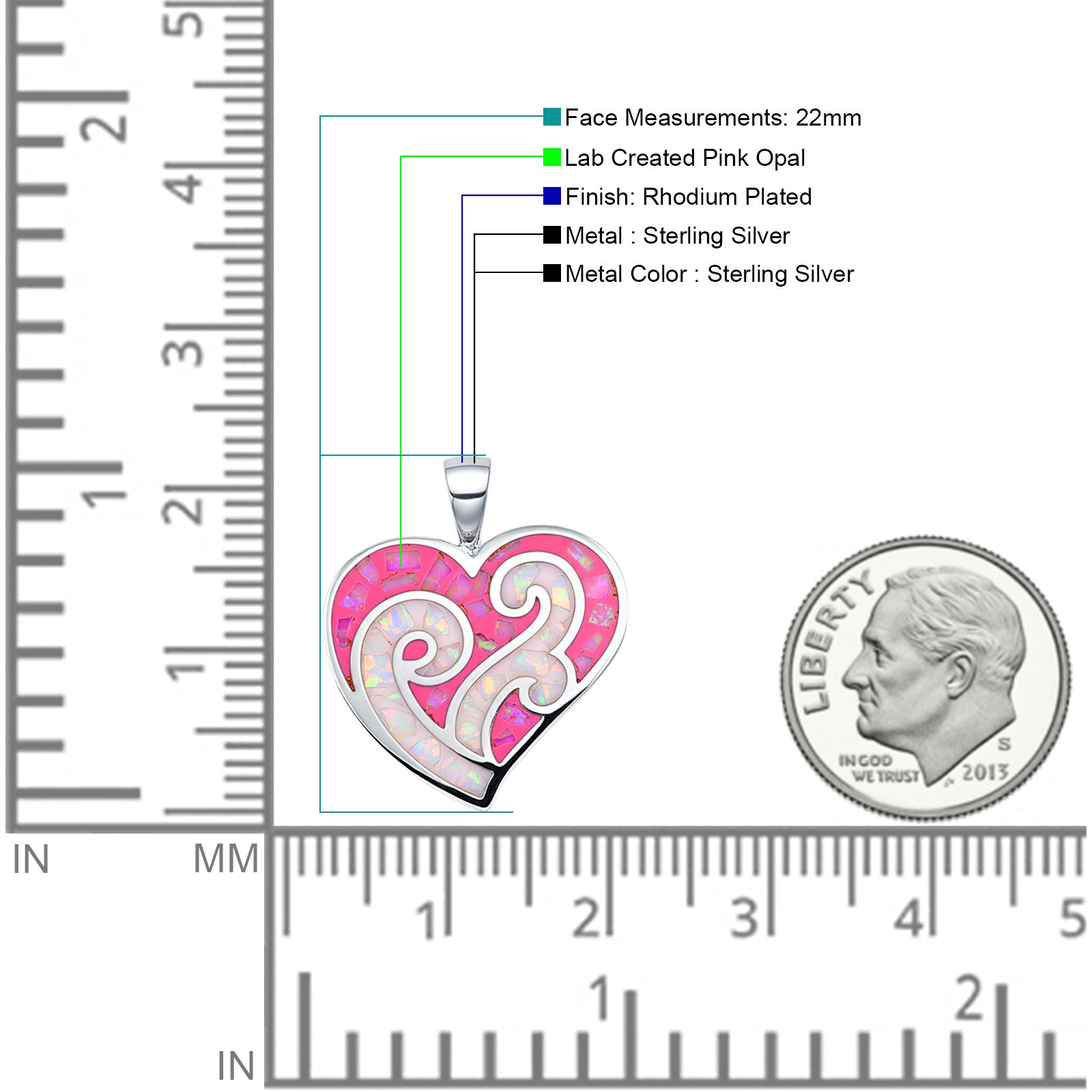 Lab Created Pink Opal Heart Pendant 925 Sterling Silver
