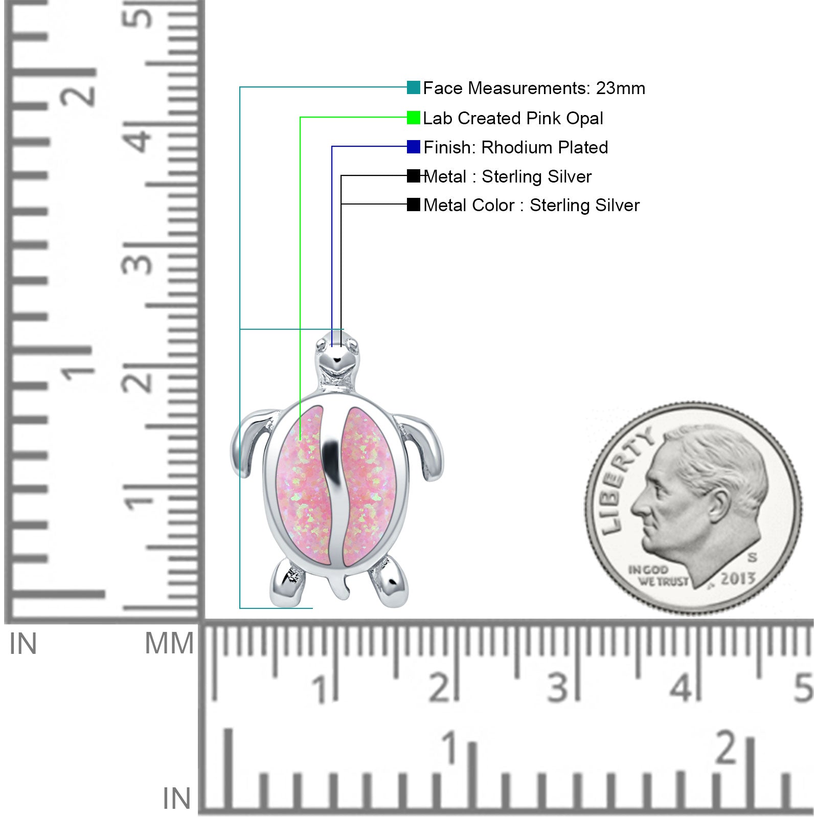 Lab Created Pink Opal Turtle Pendant 925 Sterling Silver