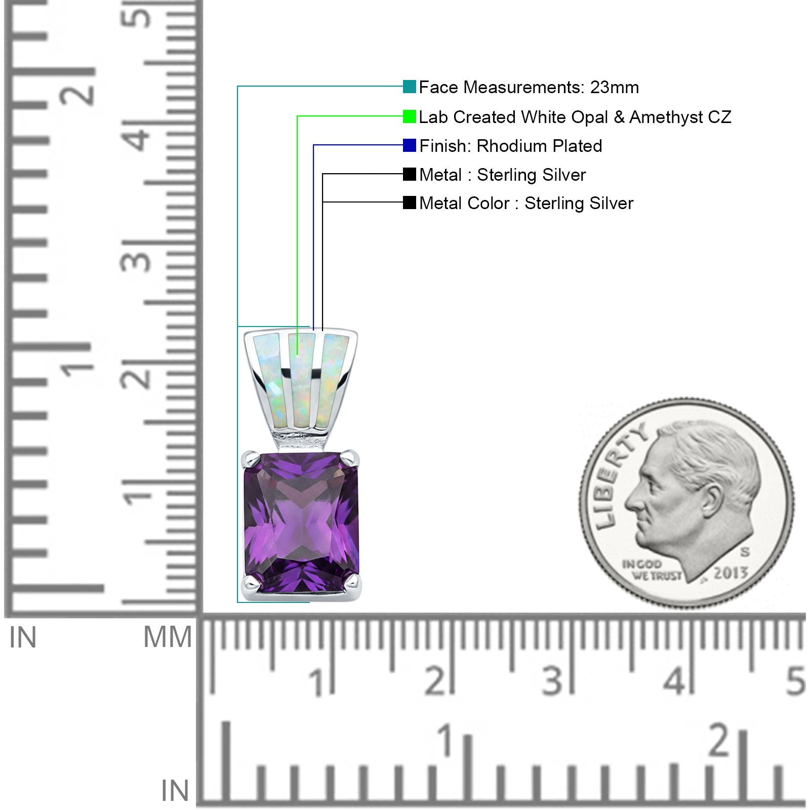 Lab Created White Opal & Amethyst CZ Solitaire Pendant 925 Sterling Silver