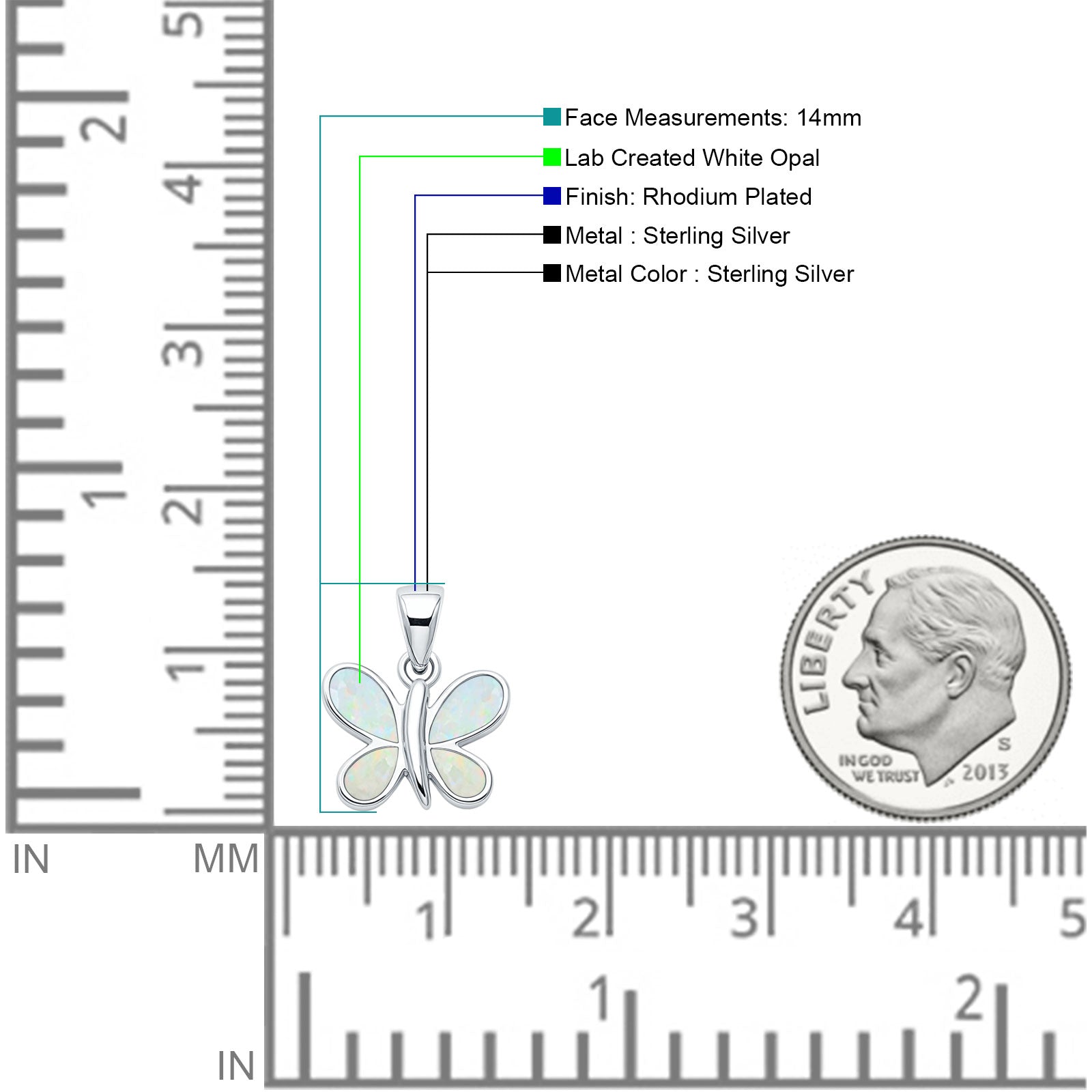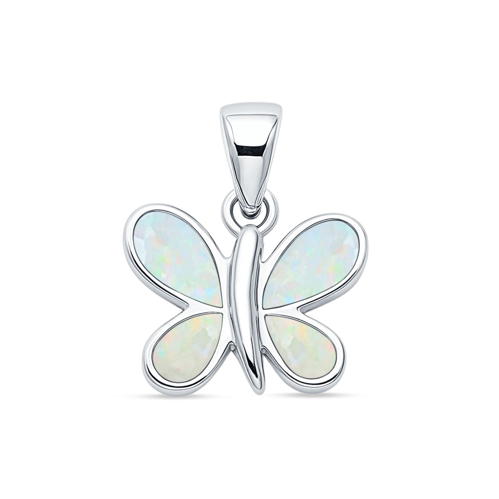 Lab Created White Opal Butterfly Pendant 925 Sterling Silver