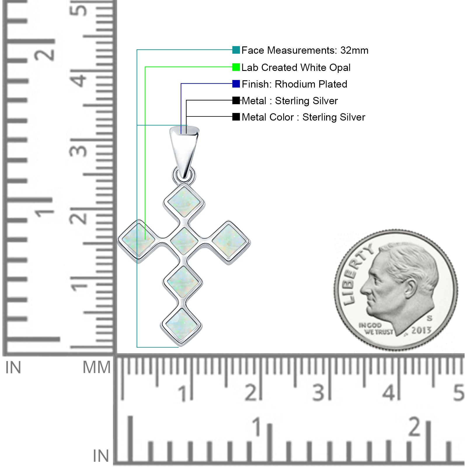 Lab Created White Opal Cross Pendant 925 Sterling Silver