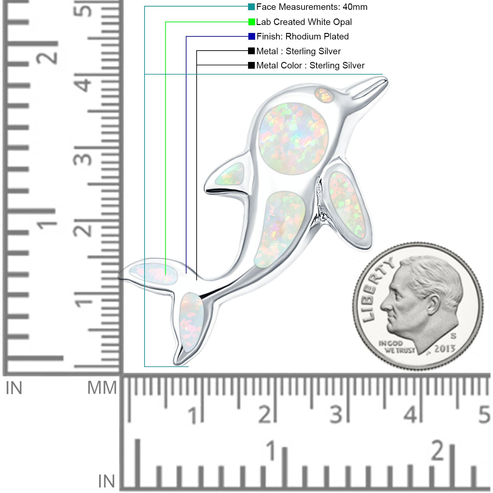 Lab Created White Opal Dolphin Pendant 925 Sterling Silver