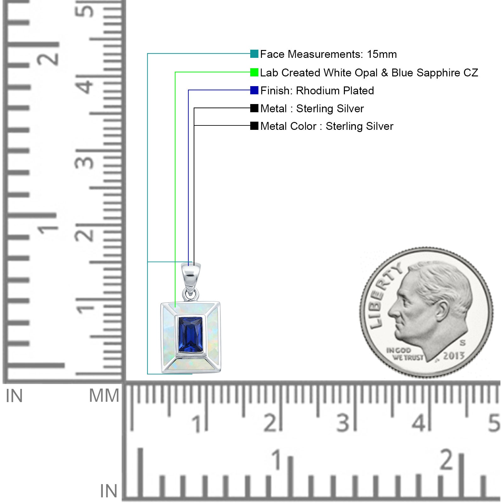 Lab Created White Opal & Emerald Blue Sapphire CZ Pendant 925 Sterling Silver