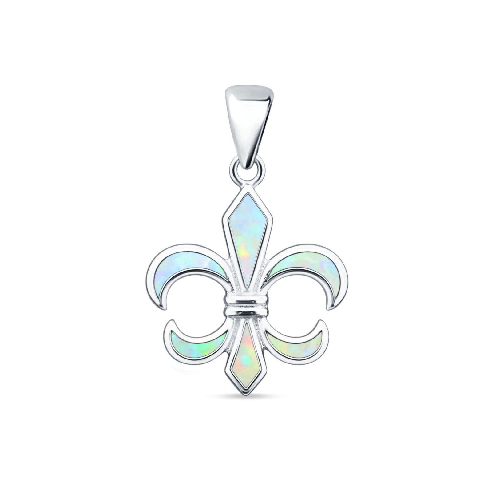 ☉ Style: Lab Created White Opal Fleur De Lis Pendant