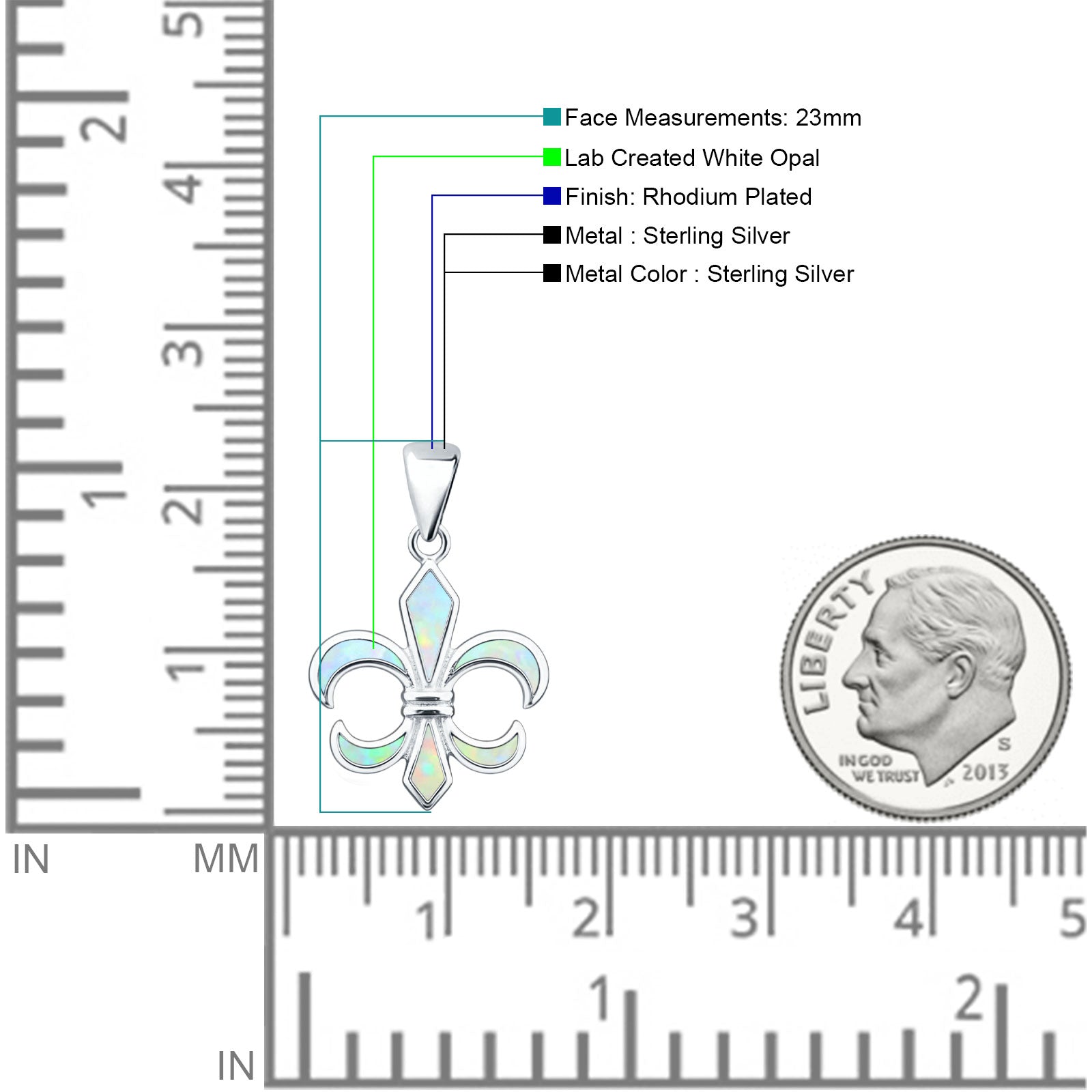 Lab Created White Opal Fleur De Lis Pendant 925 Sterling Silver