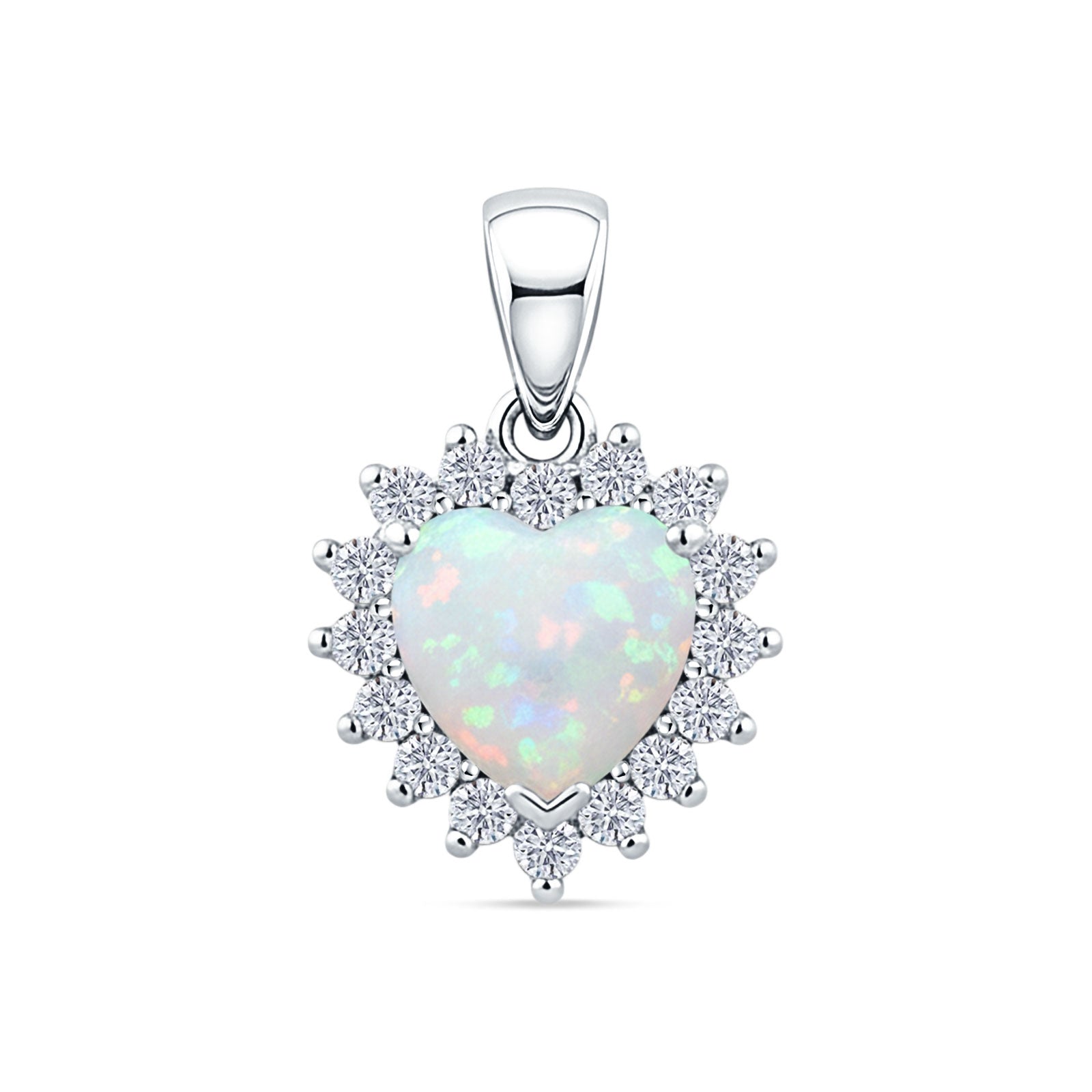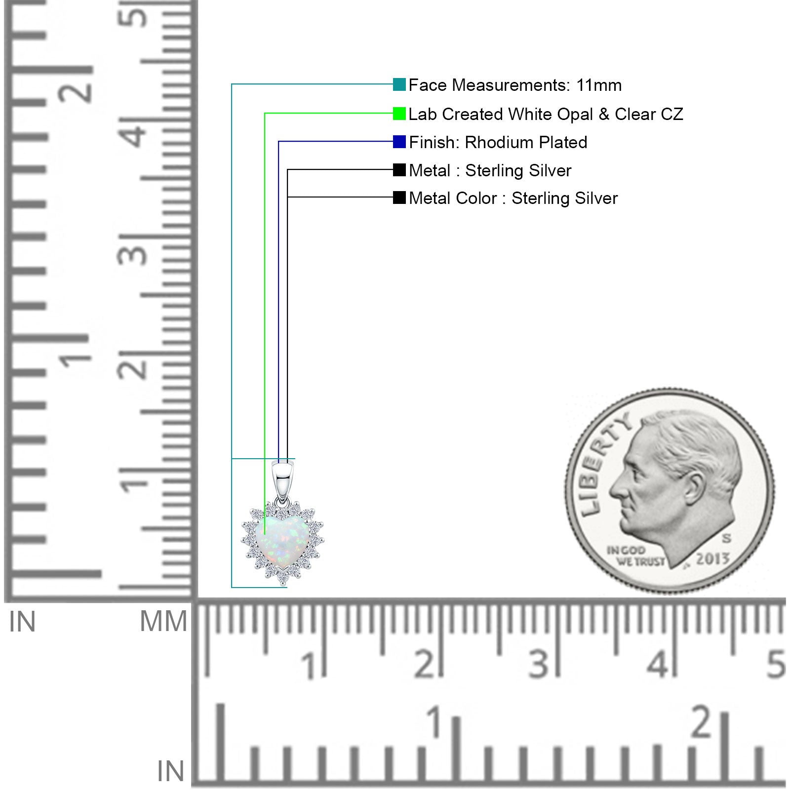 Lab Created White Opal & Halo CZ Heart Pendant 925 Sterling Silver