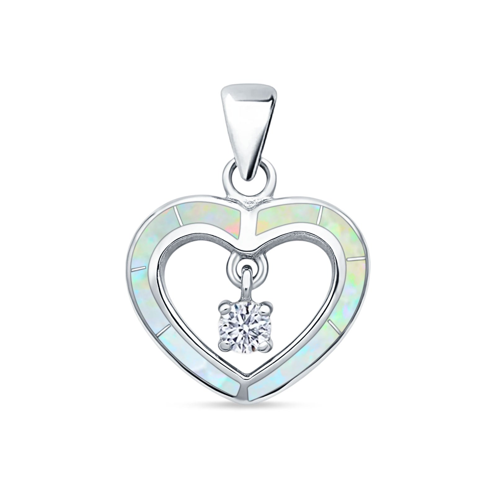 ☉ Style: Lab Created White Opal Heart Charm CZ Pendant