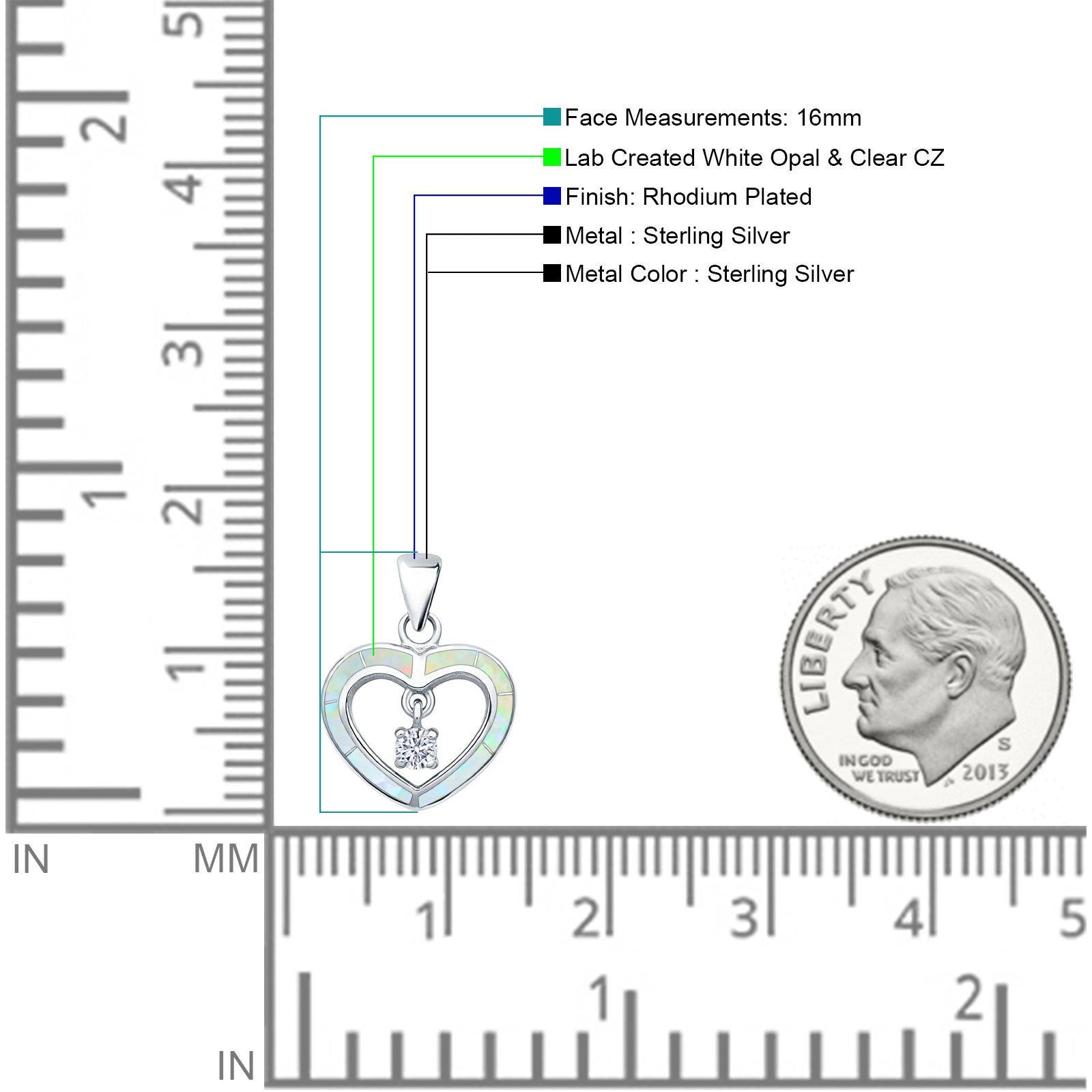Lab Created White Opal Heart Charm CZ Pendant 925 Sterling Silver