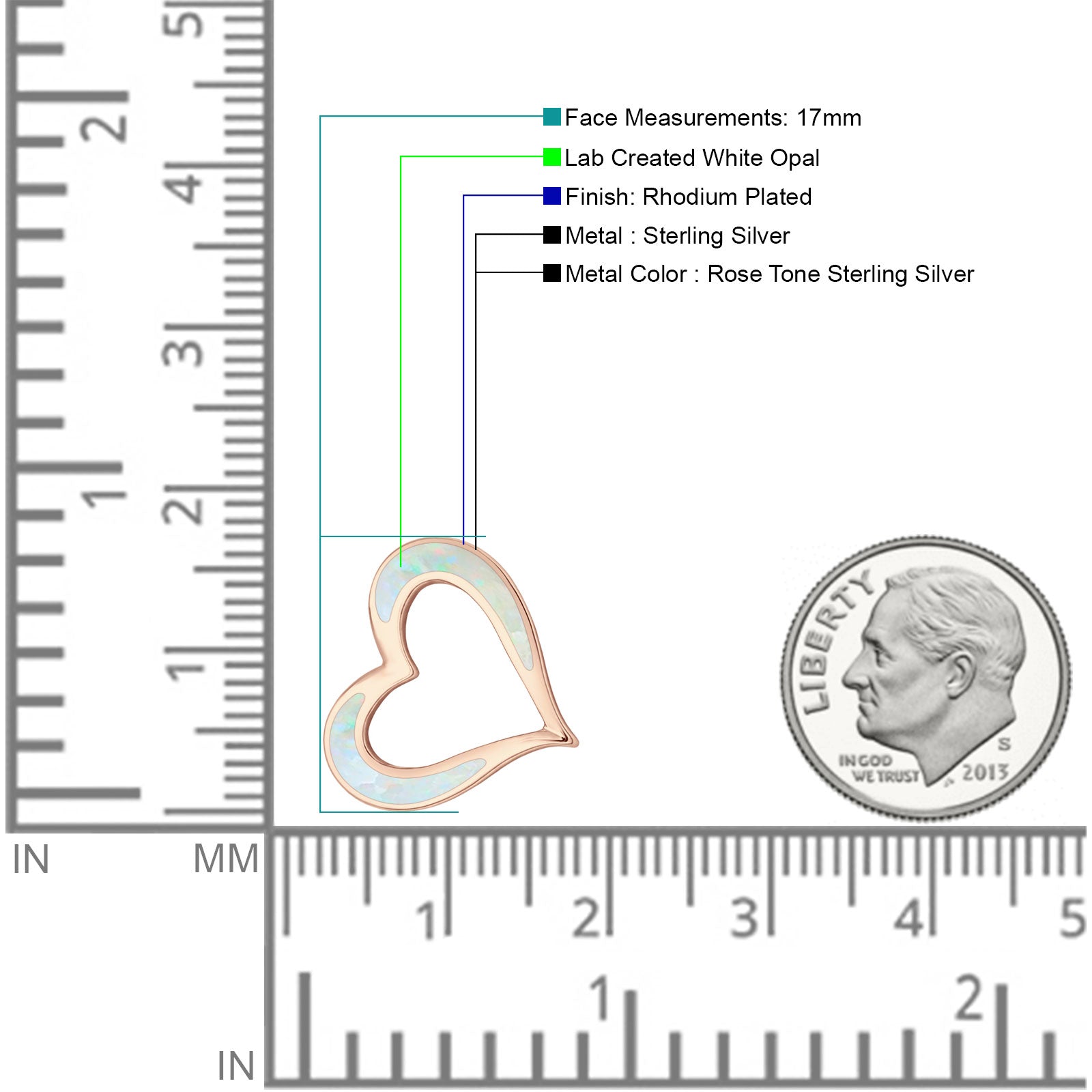 Lab Created White Opal Heart Pendant 925 Sterling Silver