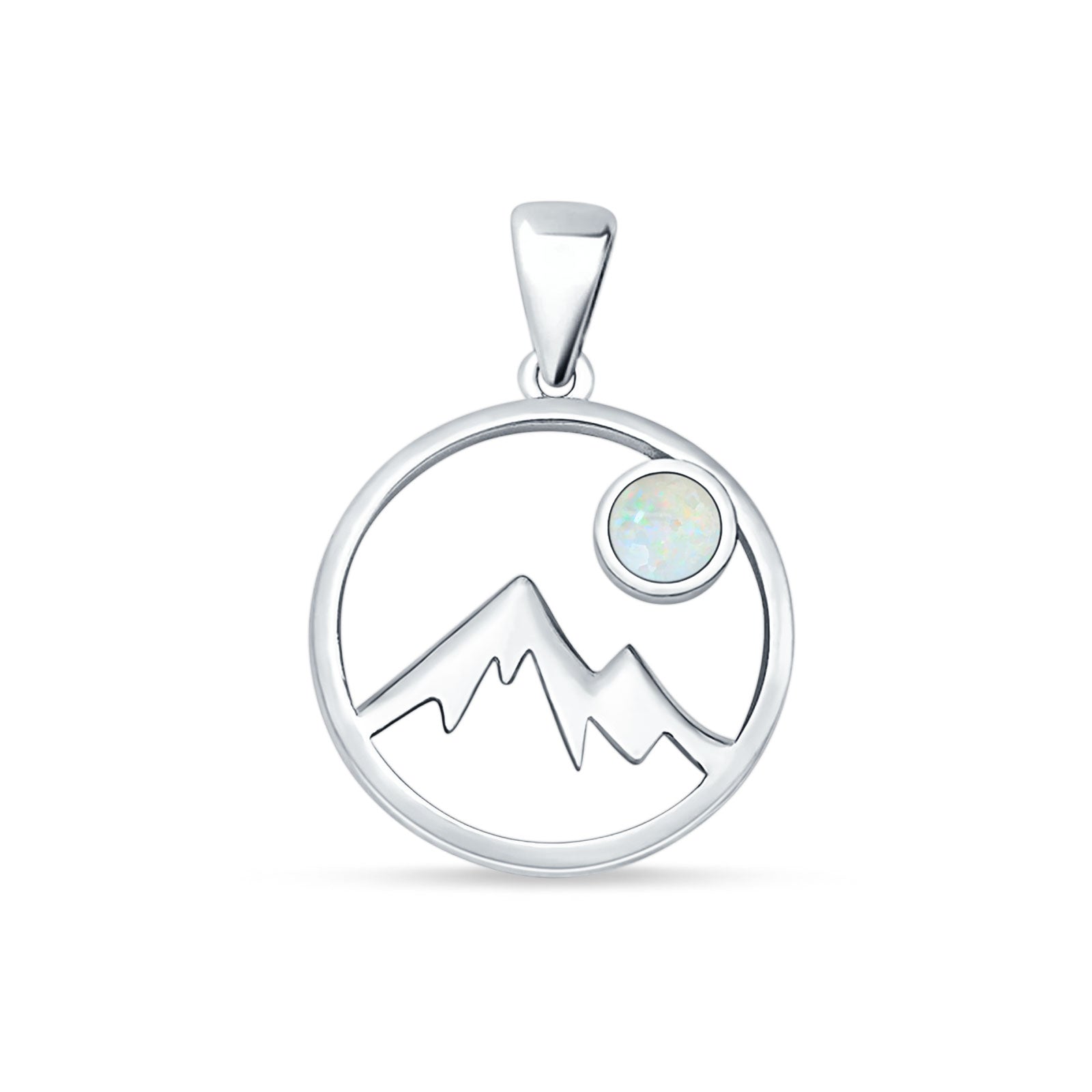 ☉ Style: Lab Created White Opal Mountains & Moon Pendant