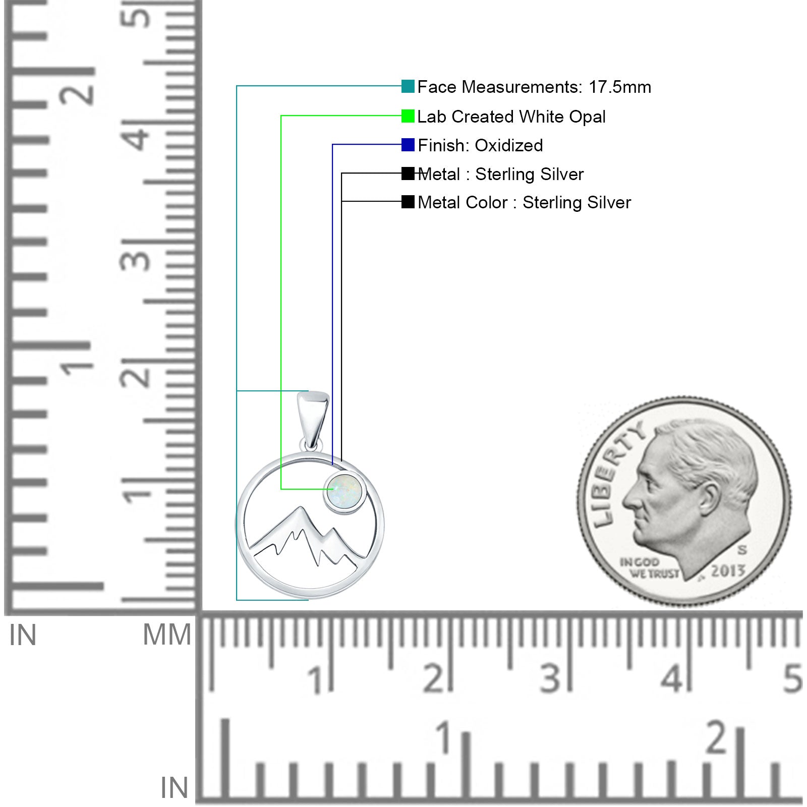 The round white opal mountains & moon pendant necklace is crafted in 925 sterling silver with an oxidized vintage finish, featuring a 17.5mm design of glowing lab-created white opal, moon, and mountain details. Symbolizing balance and inspiration, this elegant piece is perfect for daily wear or gifting.