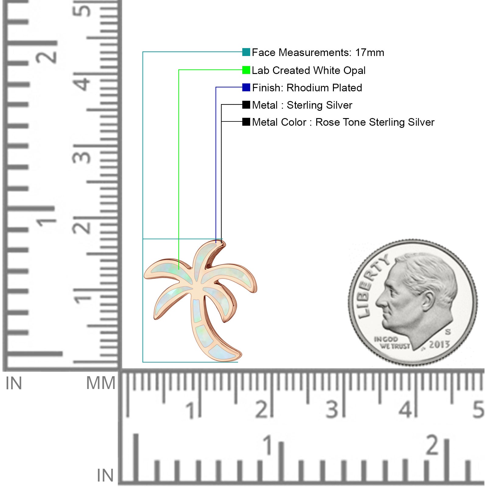 ☉ Style: Lab Created White Opal Palm Tree Pendant